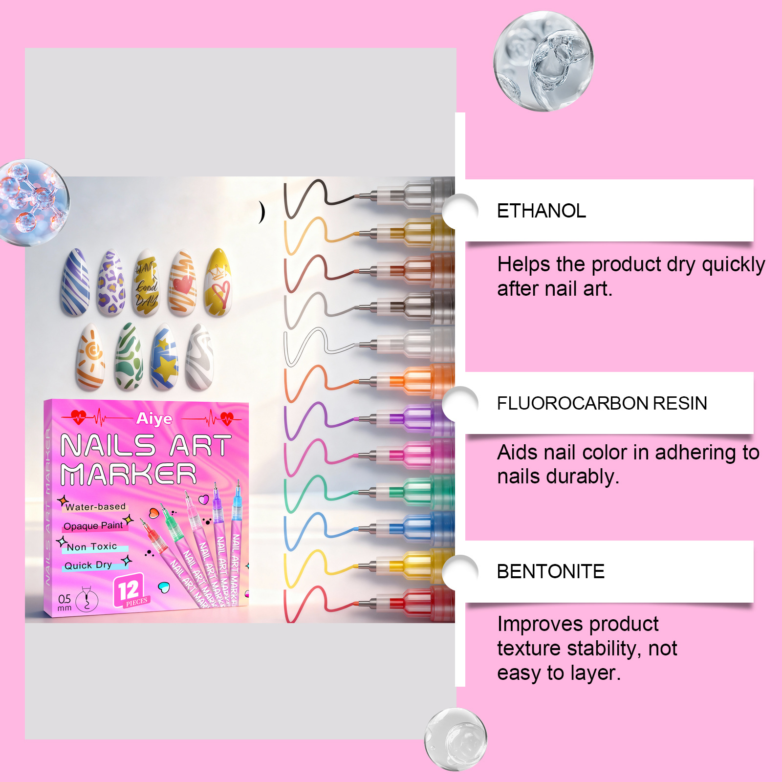 彩绘美甲笔 显色易操作指甲勾勒美甲彩绘工具多场合DIY不易晕染