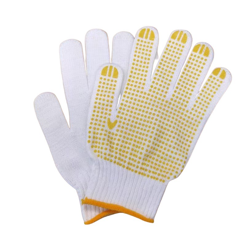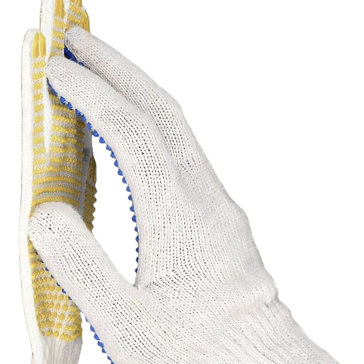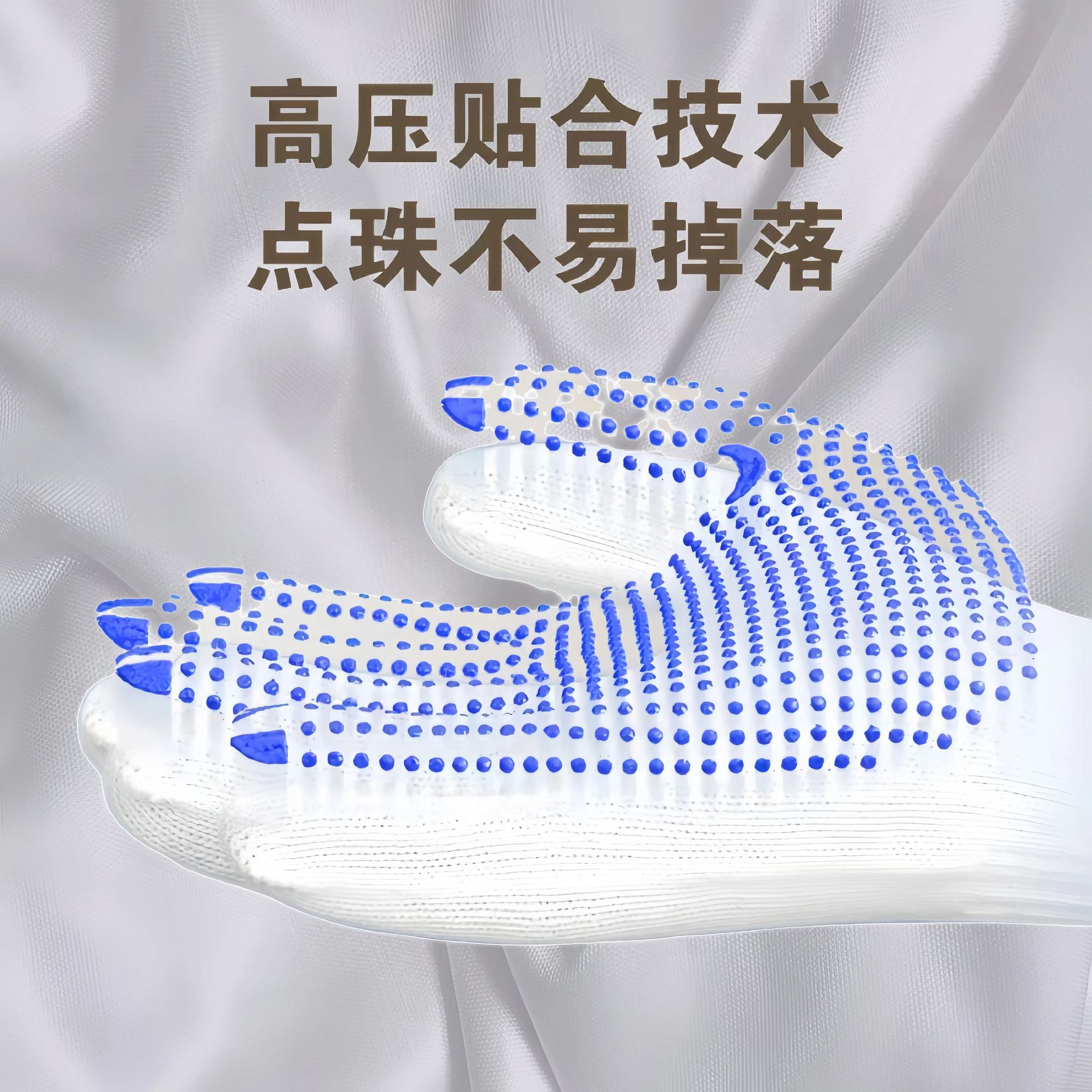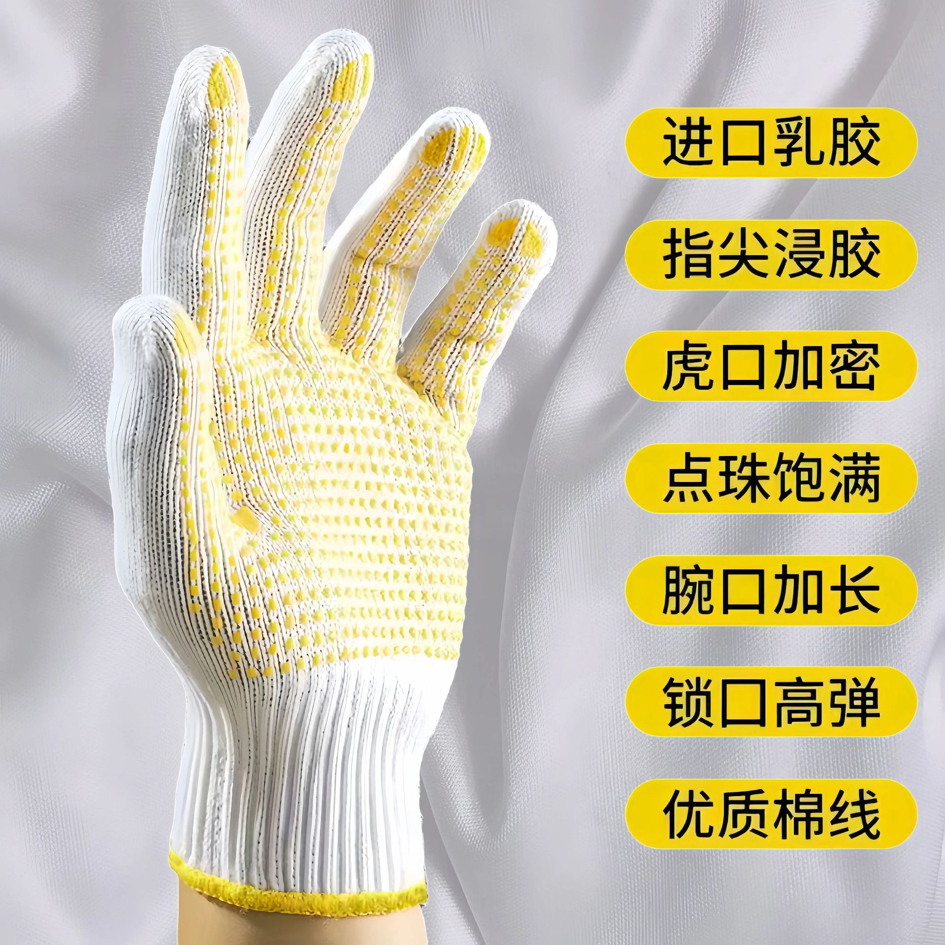 爆款推荐耐磨透气防滑 蓝点黄点点胶 劳保纱线点胶手套