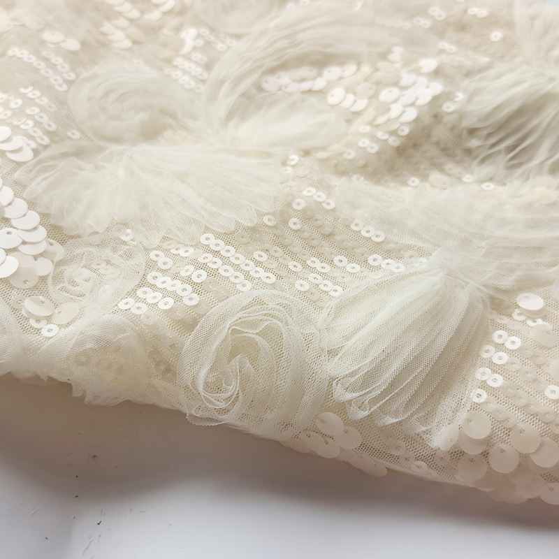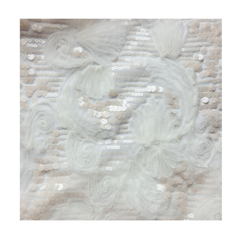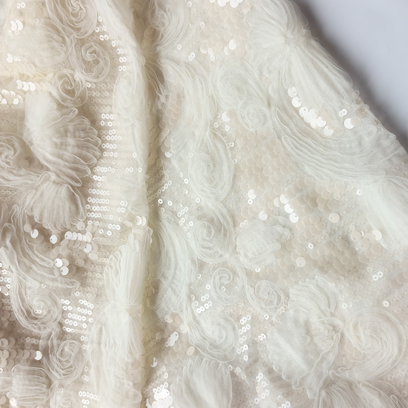 立体盘带绣珠管绣网纱蕾丝面料珍珠亮片盘花绣舞蹈服装刺绣布批发