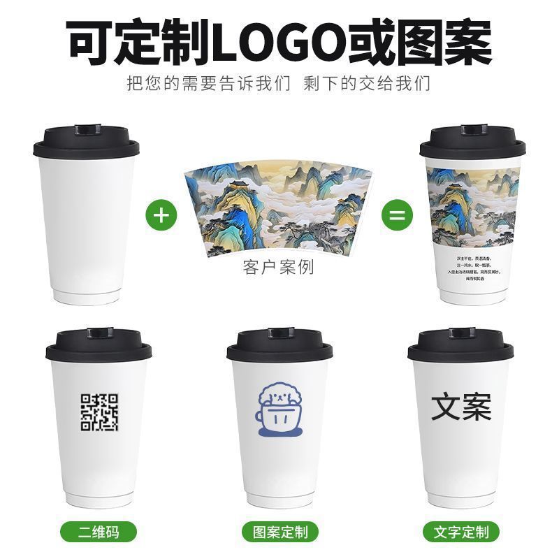 现货咖啡杯一次性纸杯双层中空杯加厚商用奶茶外卖打包纸杯商用