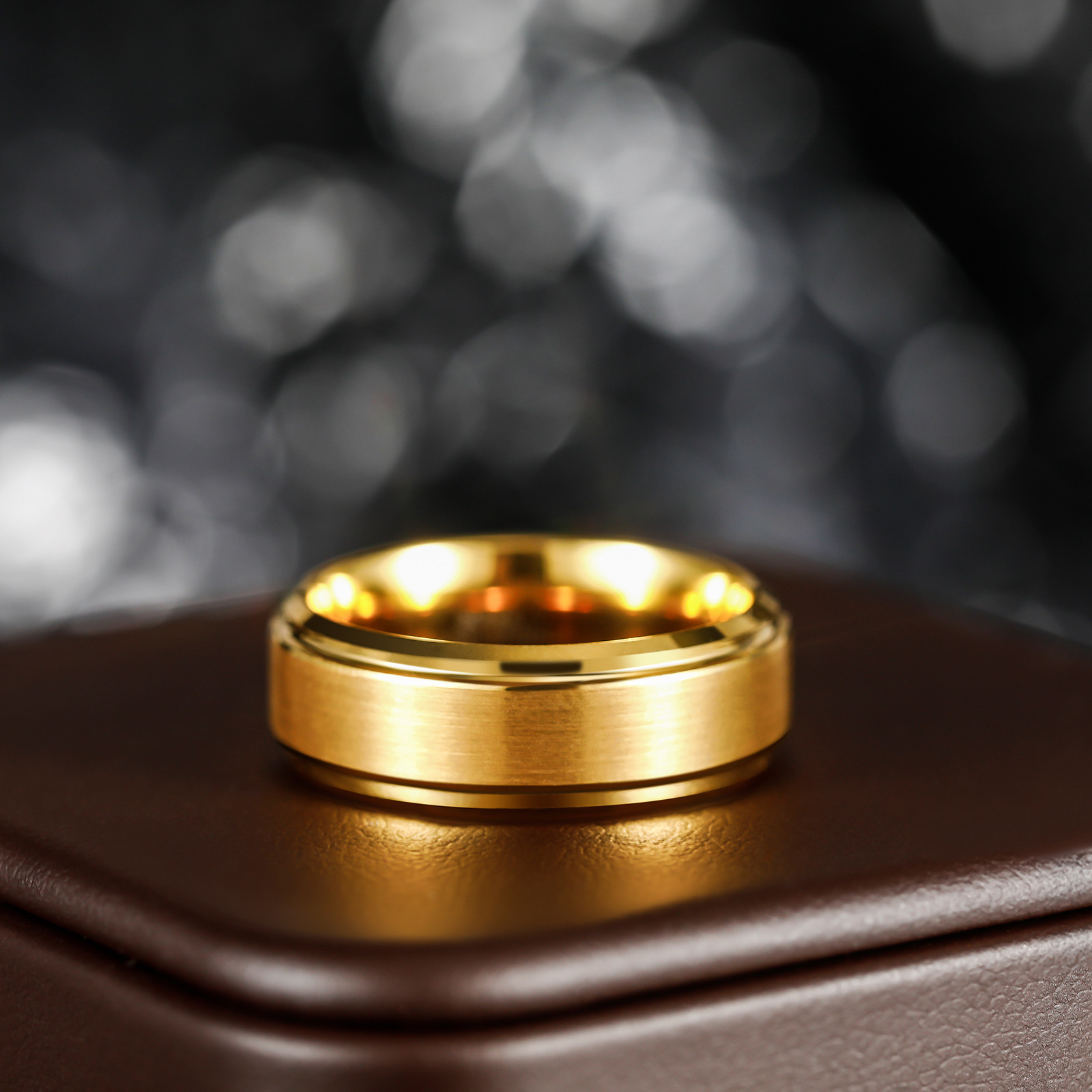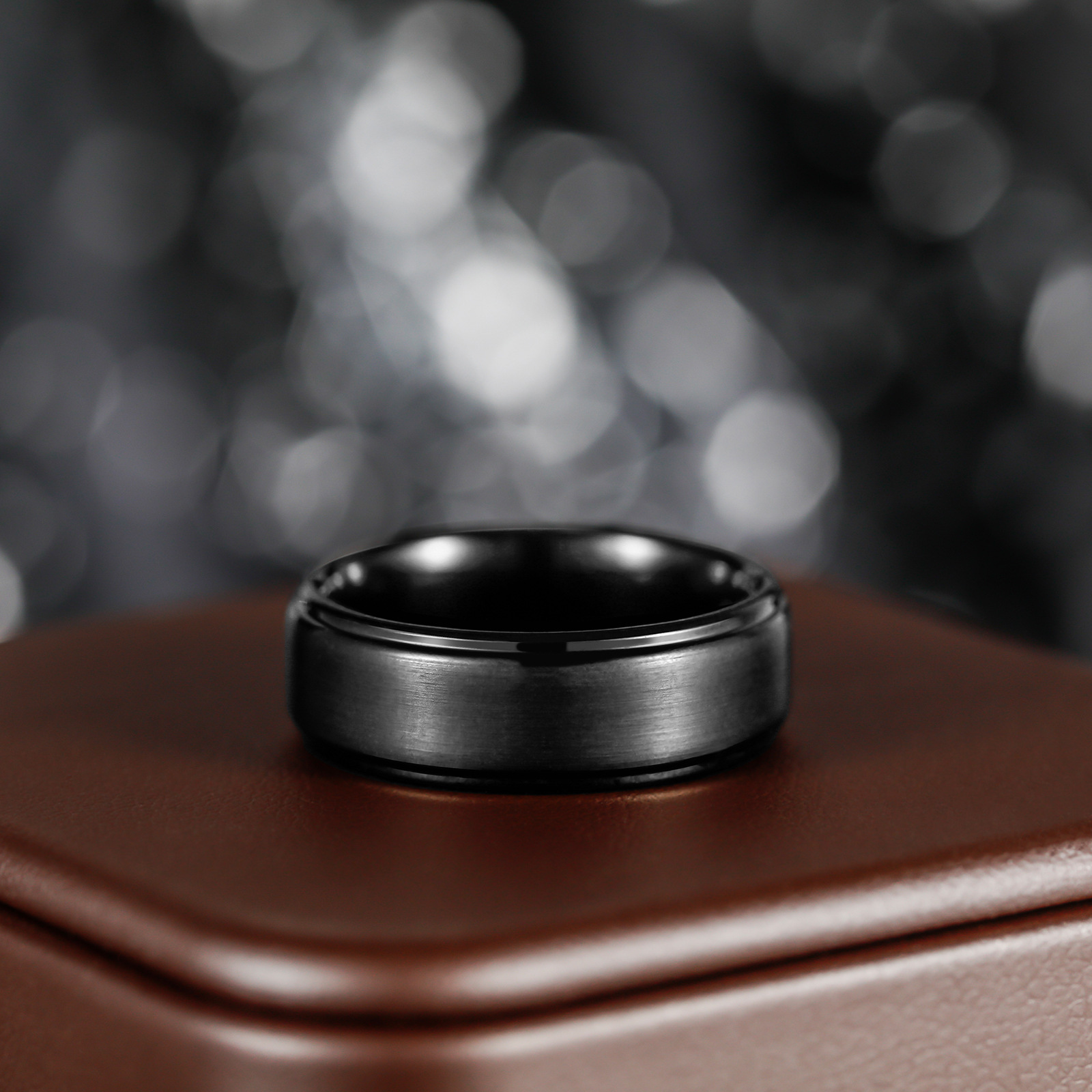 欧美手饰厂家现货台阶边 宽面4/6/8mm男式银色黑色金色蓝钨钢戒指