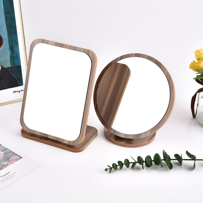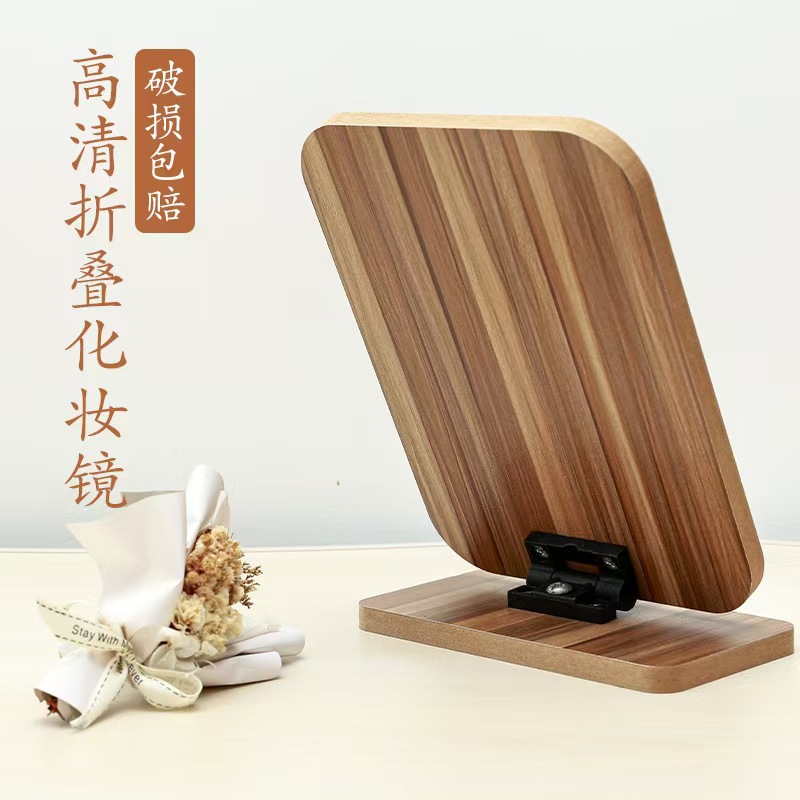 木制折叠镜 可立式桌面折叠化妆镜 大号复古折叠镜宿舍学生高清镜