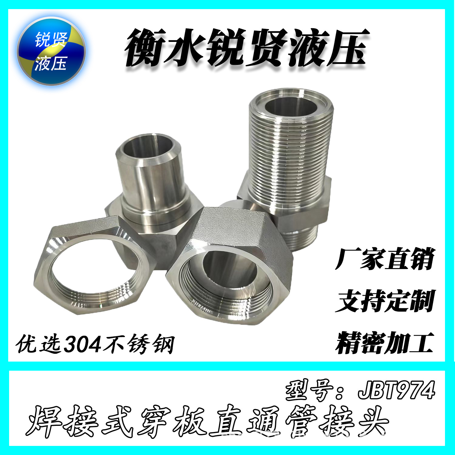 定制304不锈钢JBT974加长穿板接头液压焊接式隔壁直通接头