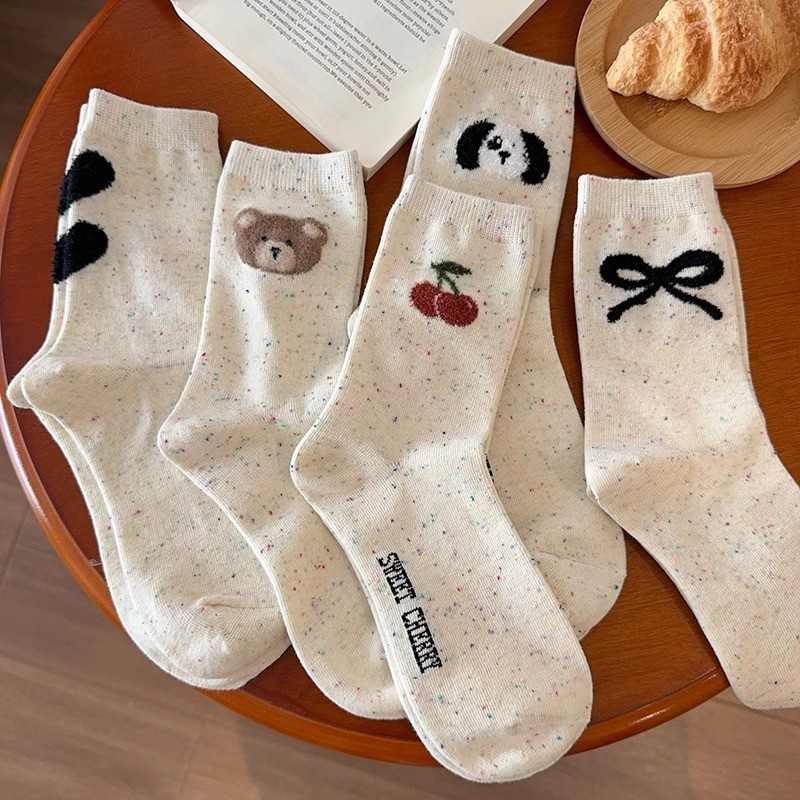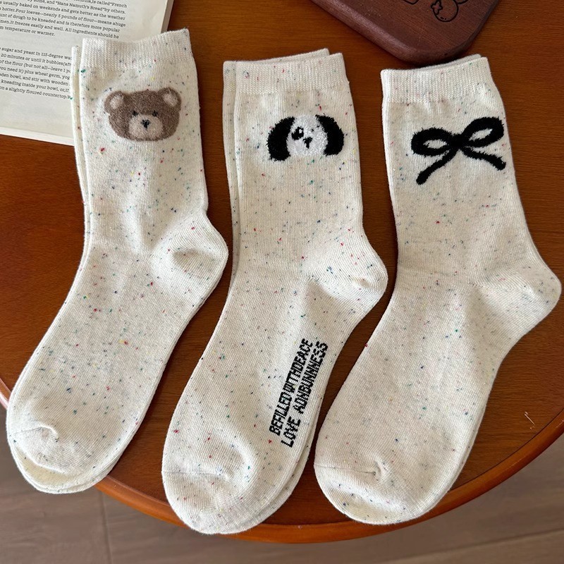 可爱小熊图案袜子点子纱日系中筒袜学院风袜子春秋款ins潮韩国袜