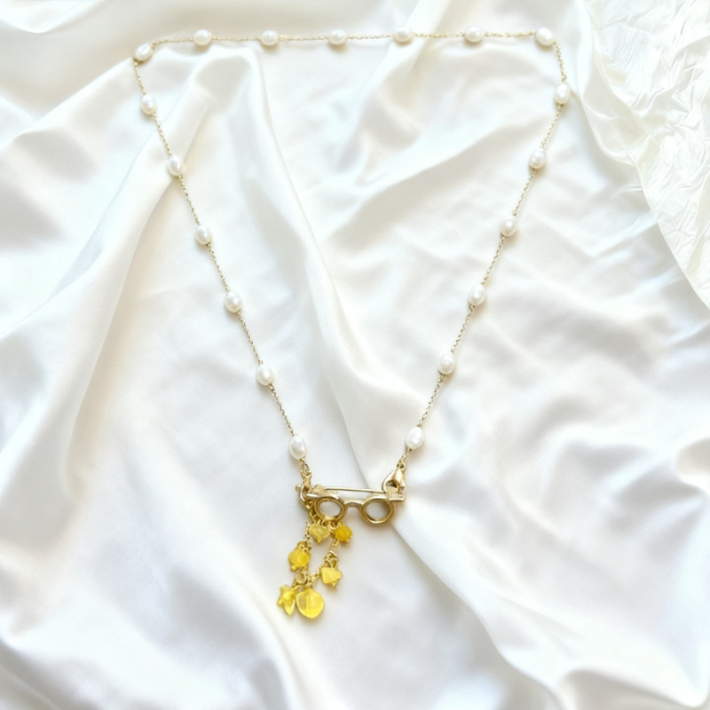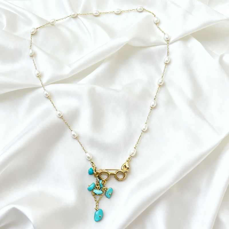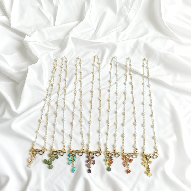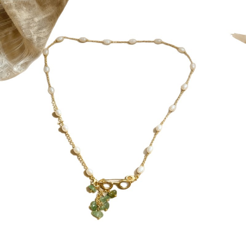 新款天然碎石吊坠项链女复古气质毛衣链精致时尚百搭颈链批发