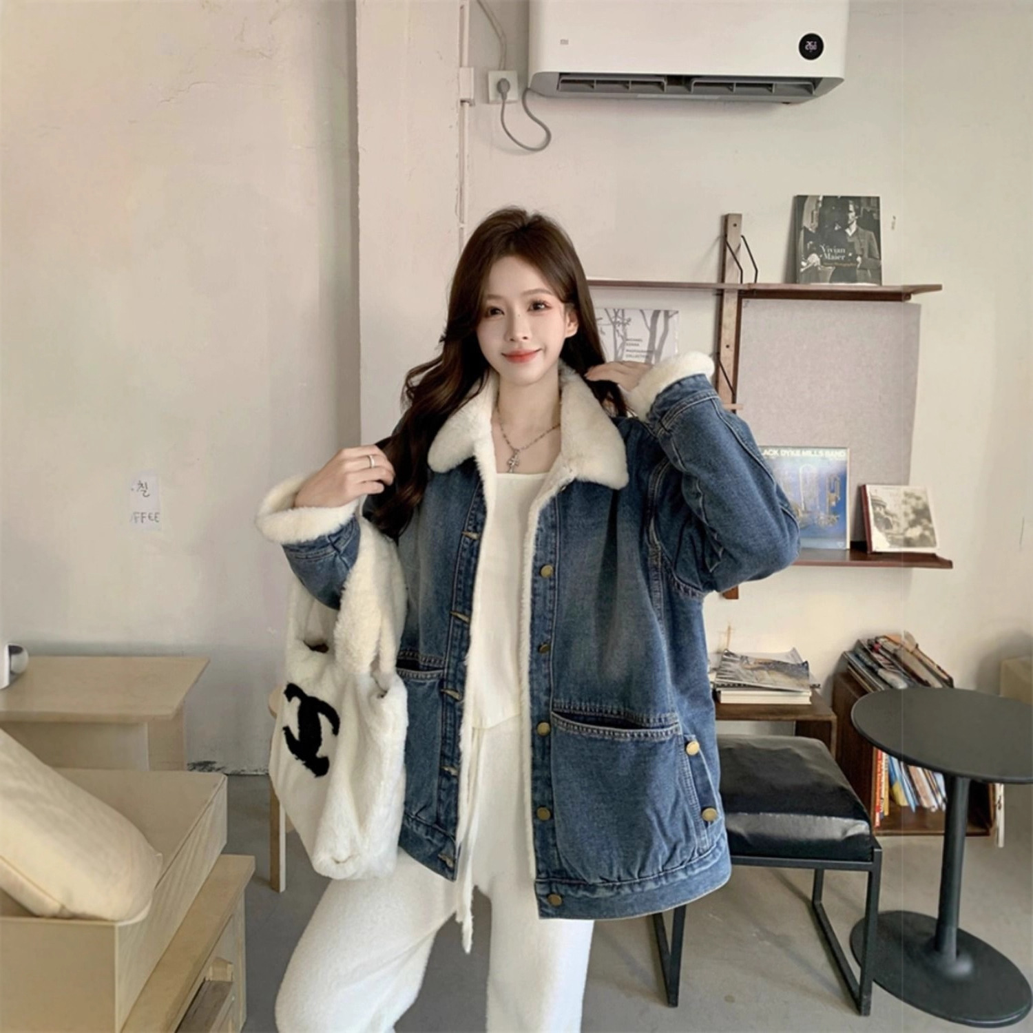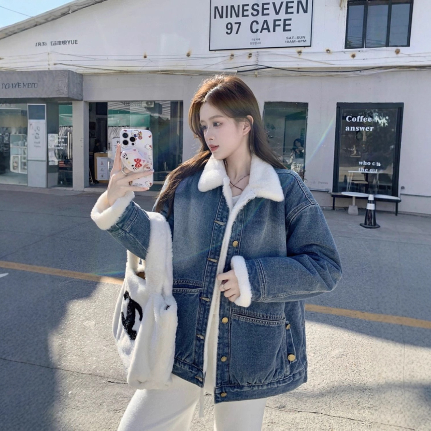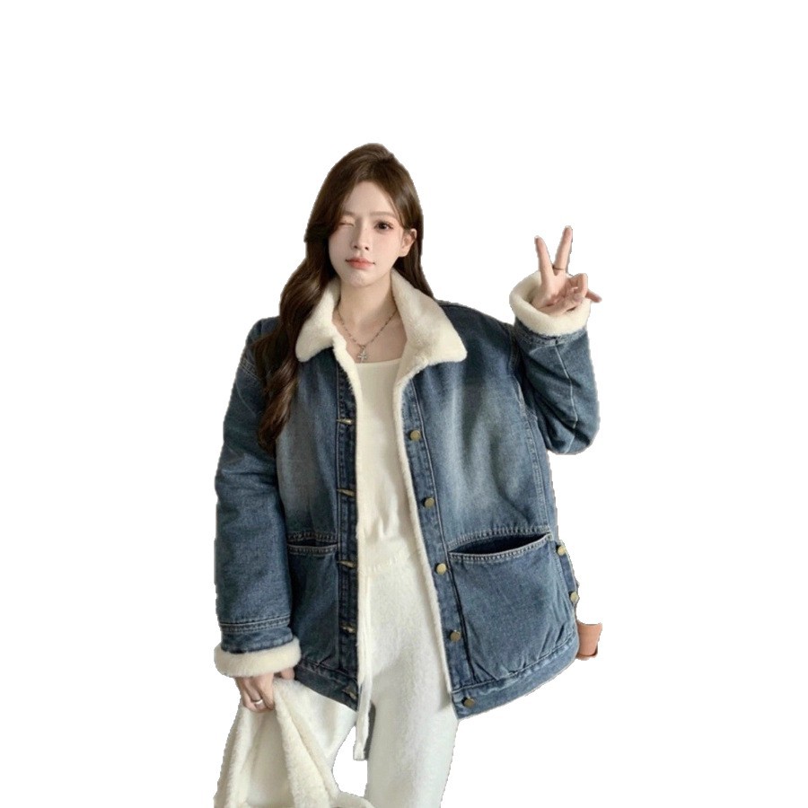 牛仔外套女加绒加厚新款保暖上衣水洗牛仔衣休闲大版韩版宽松夹克