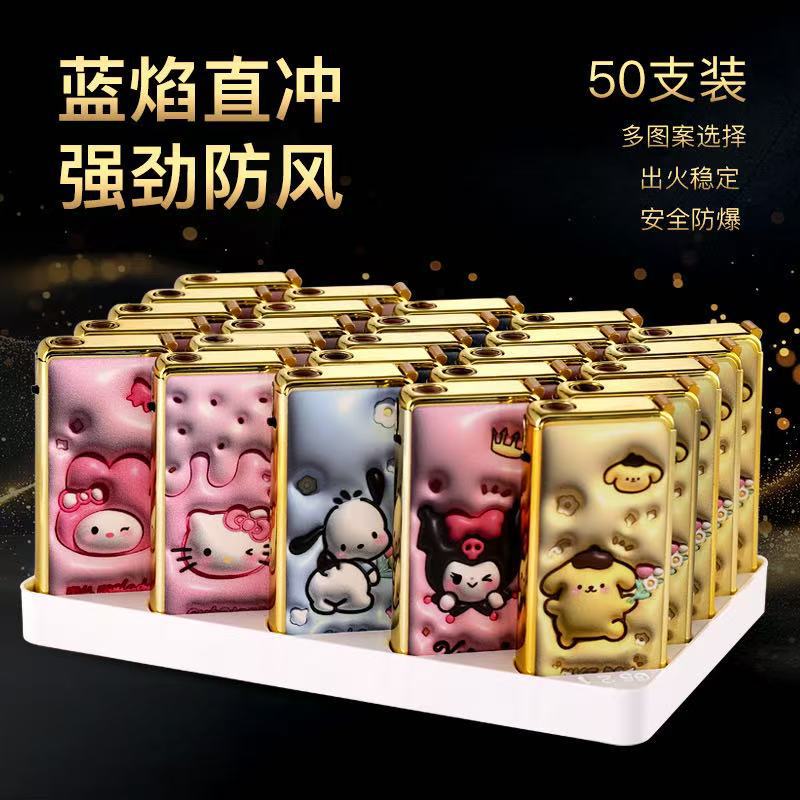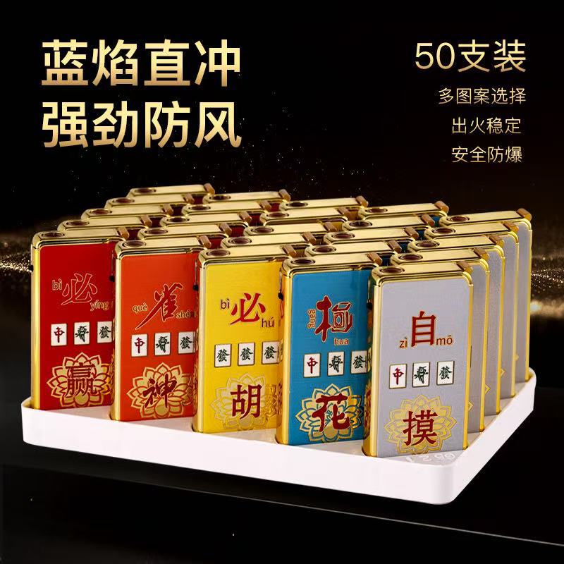 2026新年暴富蓝焰直冲防风打火机新款加厚防爆充气彩印厂家批发