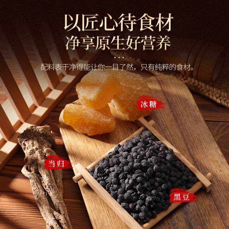 原料和配料 | 黑豆、当归、冰糖、食用盐 | | 是否带壳 | 果仁 |