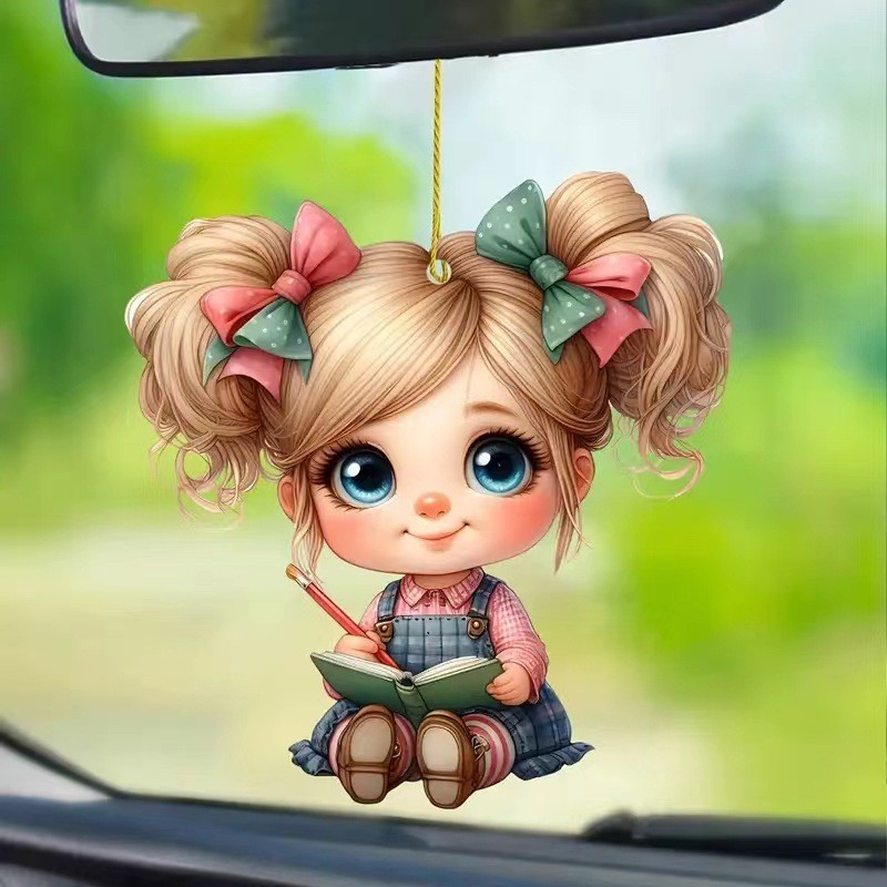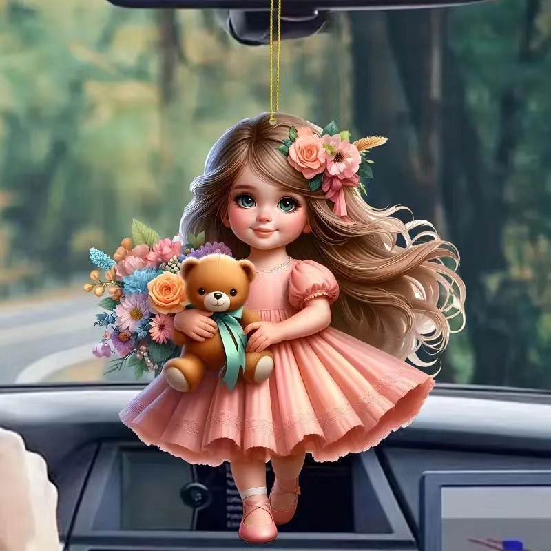 新款迷人亚克力平面女孩汽车后视镜背包或钥匙链挂饰挂件