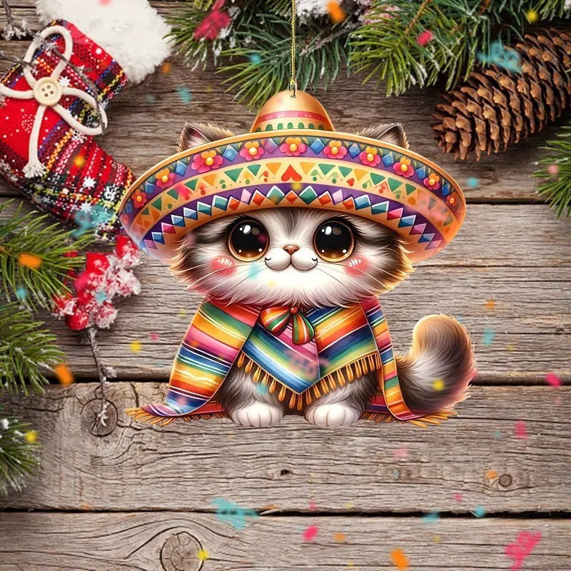 圣诞节可爱小猫汽车后视镜装饰品圣诞树小挂件