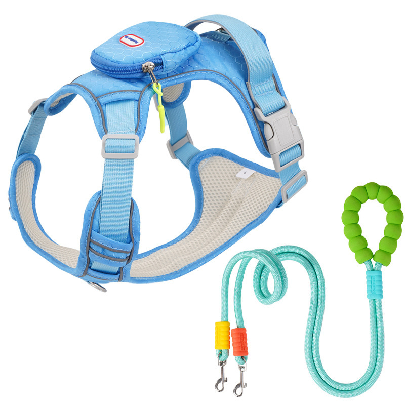 | 颜色 | 晴空蓝色胸背+蓝色圆绳子 | 颜色 | 薄荷绿胸背+绿色圆绳子 |
