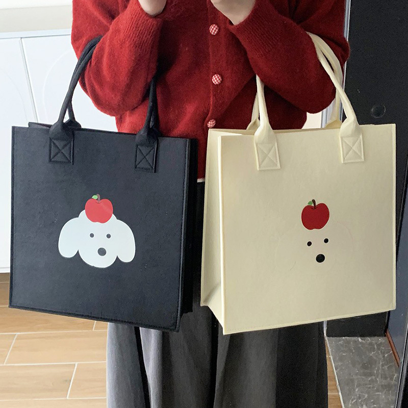 工厂定制卡通小狗毛毡包企业单位印制手提袋LOGO节日年会毛毡袋包