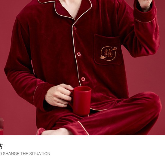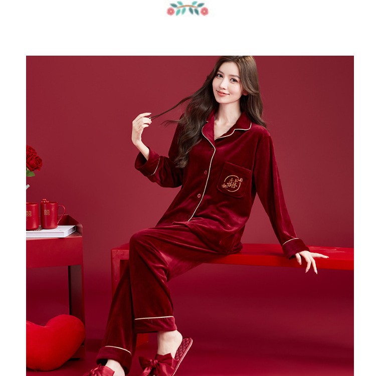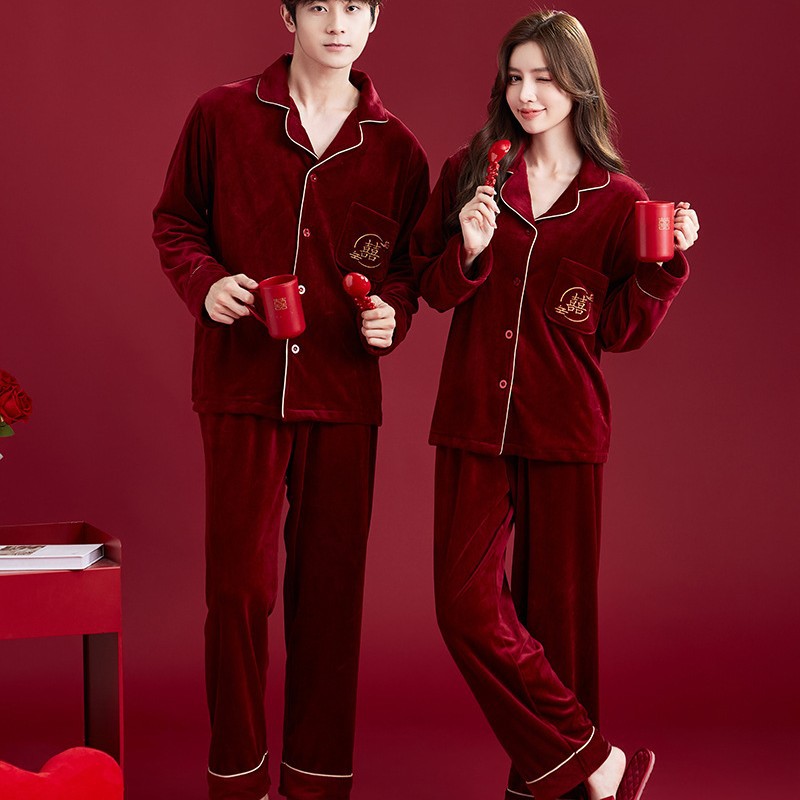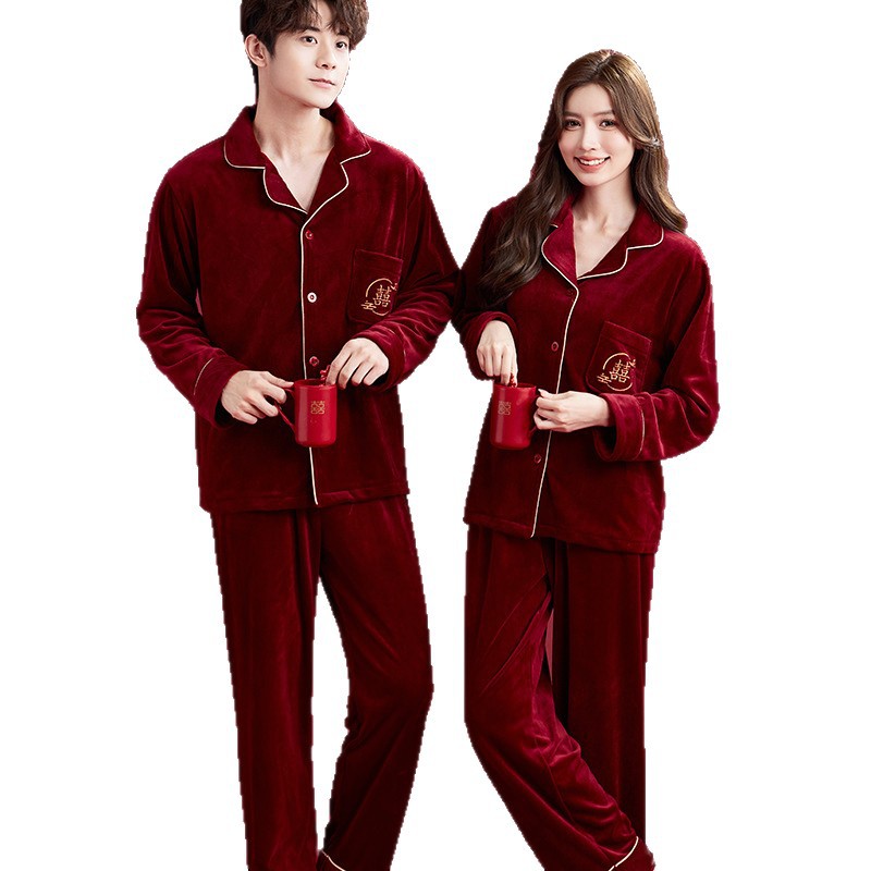 情侣睡衣秋冬红色海岛绒加厚保暖结婚本命年新娘陪嫁喜庆高档套装