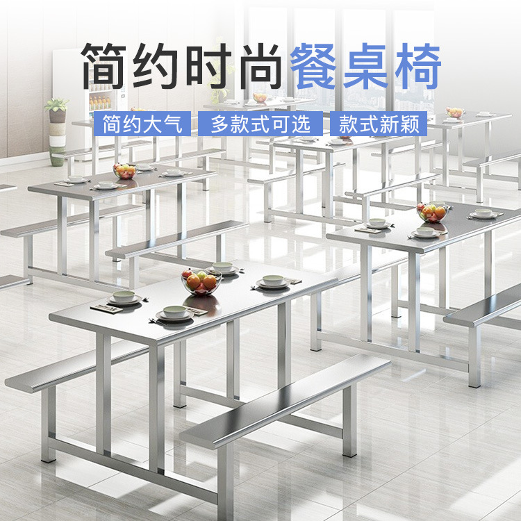 餐桌椅4人6人8人位不锈钢餐桌员工饭堂学校食堂连体快餐桌椅组合