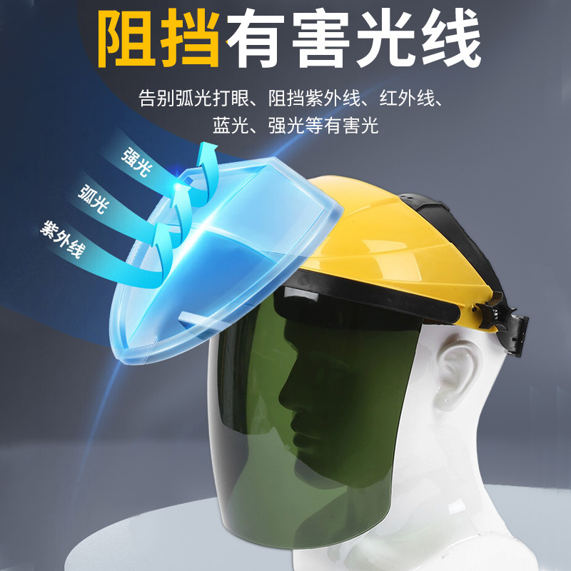 头戴轻便PC焊帽面罩防摔防飞溅面屏电绿茶灰透明白色电焊氩弧焊