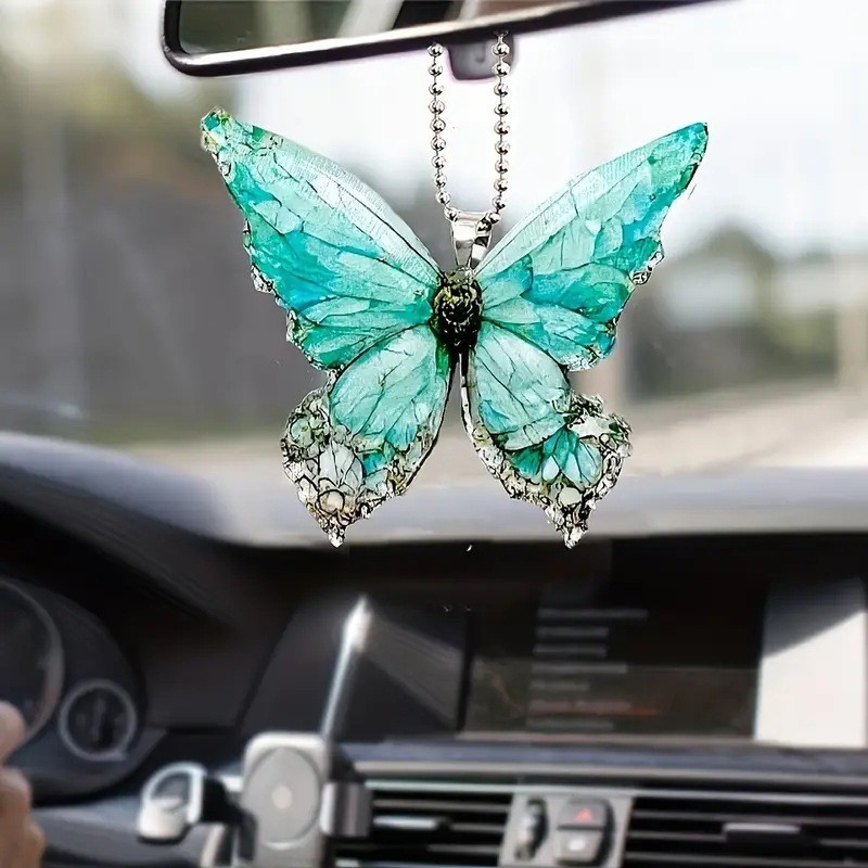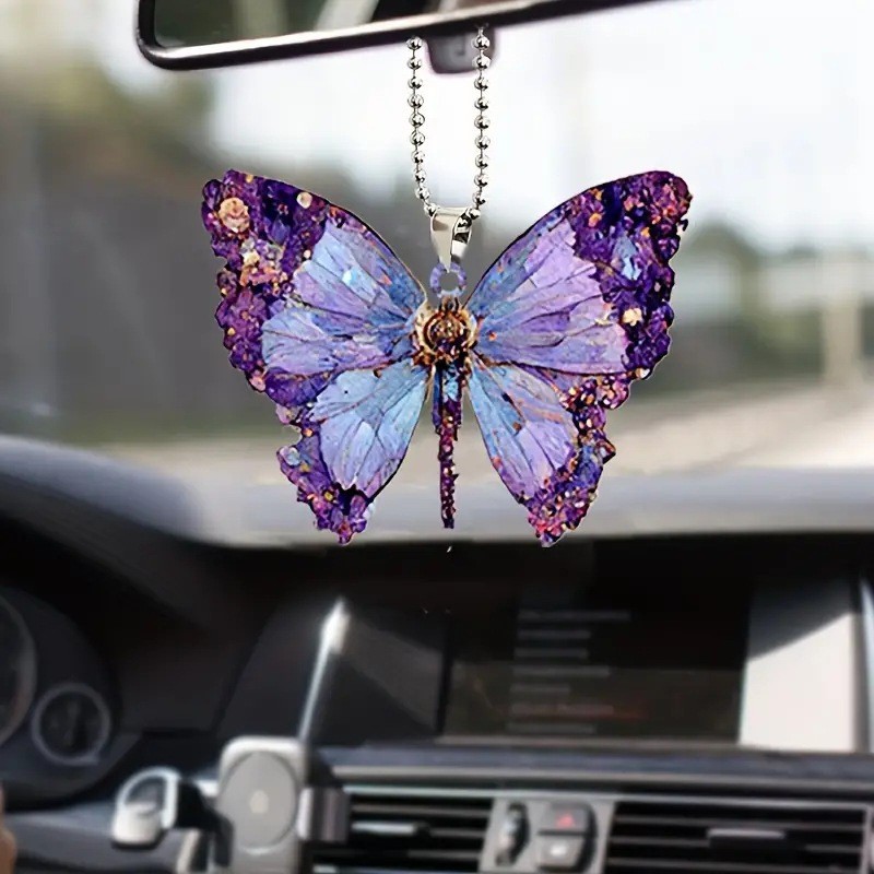 跨境新款亚克力平面个性创意多彩斑斓的蝴蝶装饰挂饰汽车钥匙挂件