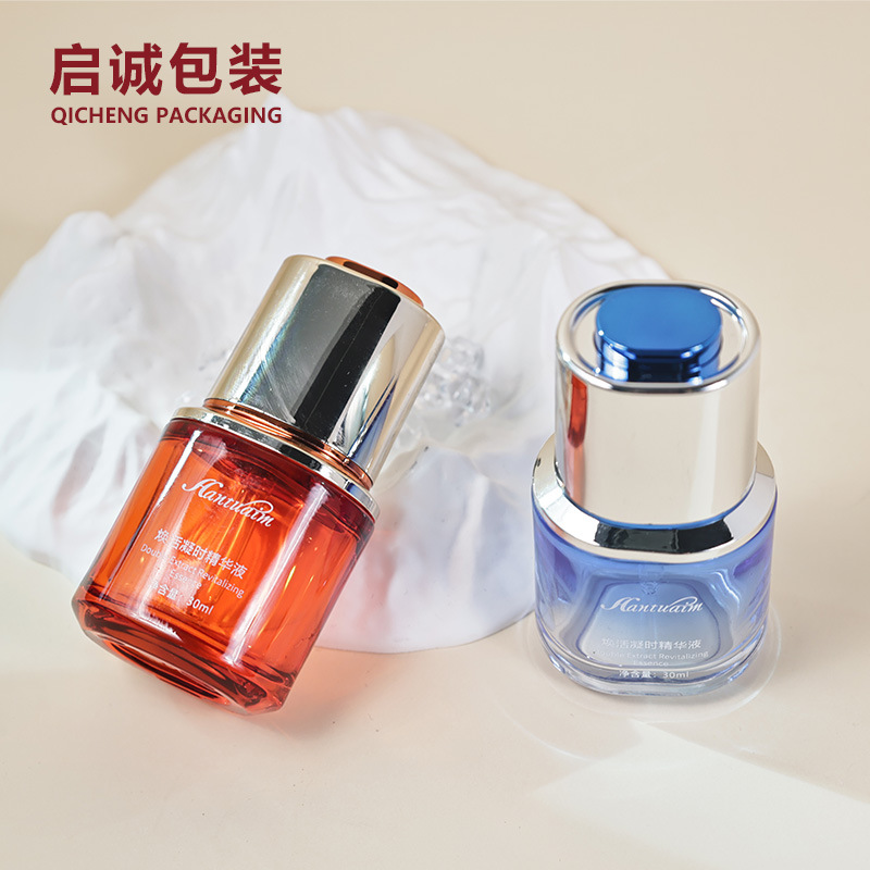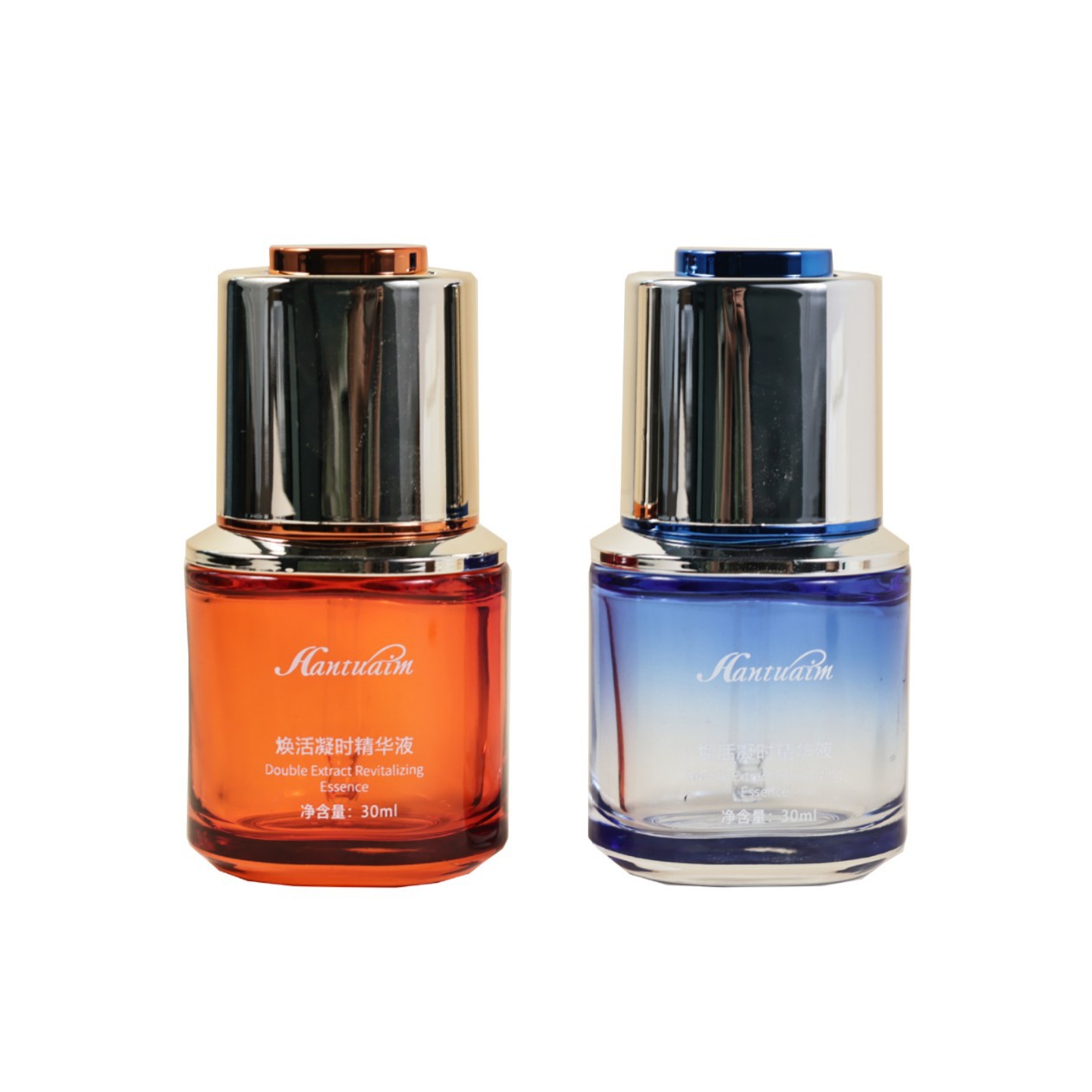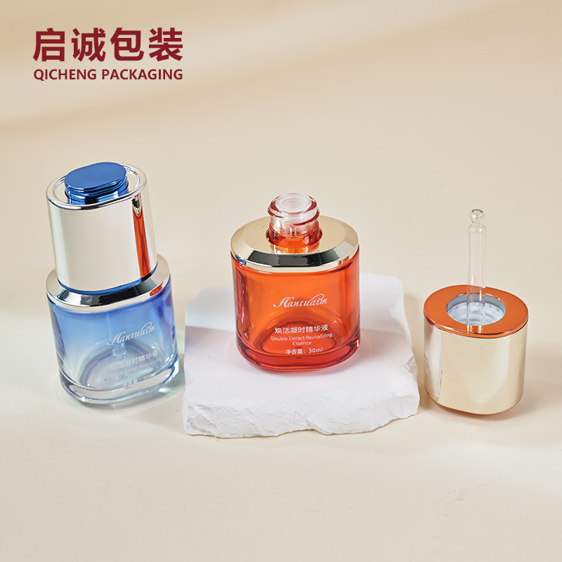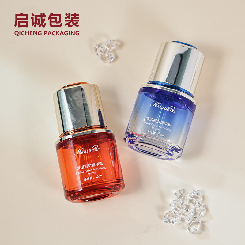 新款直圆厚底30ml精华液瓶玻璃滴管渐变精油分装瓶胶头原液瓶批发