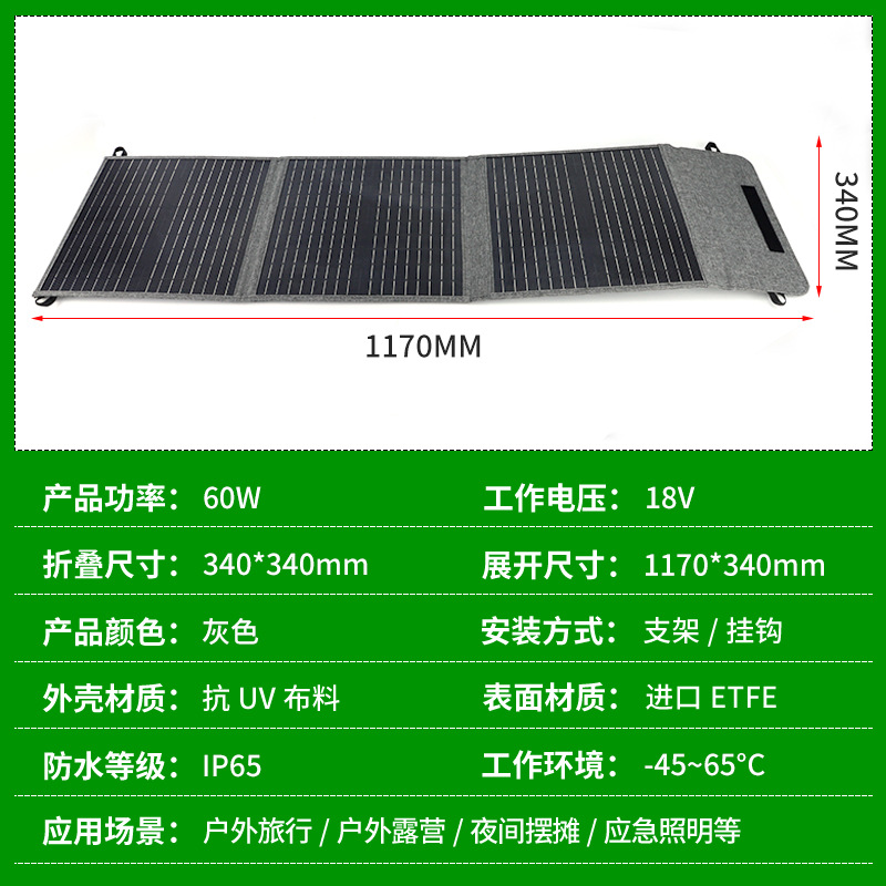 折叠太阳能板60W太阳能折叠包ETFE便携式单晶硅太阳能板光伏发电
