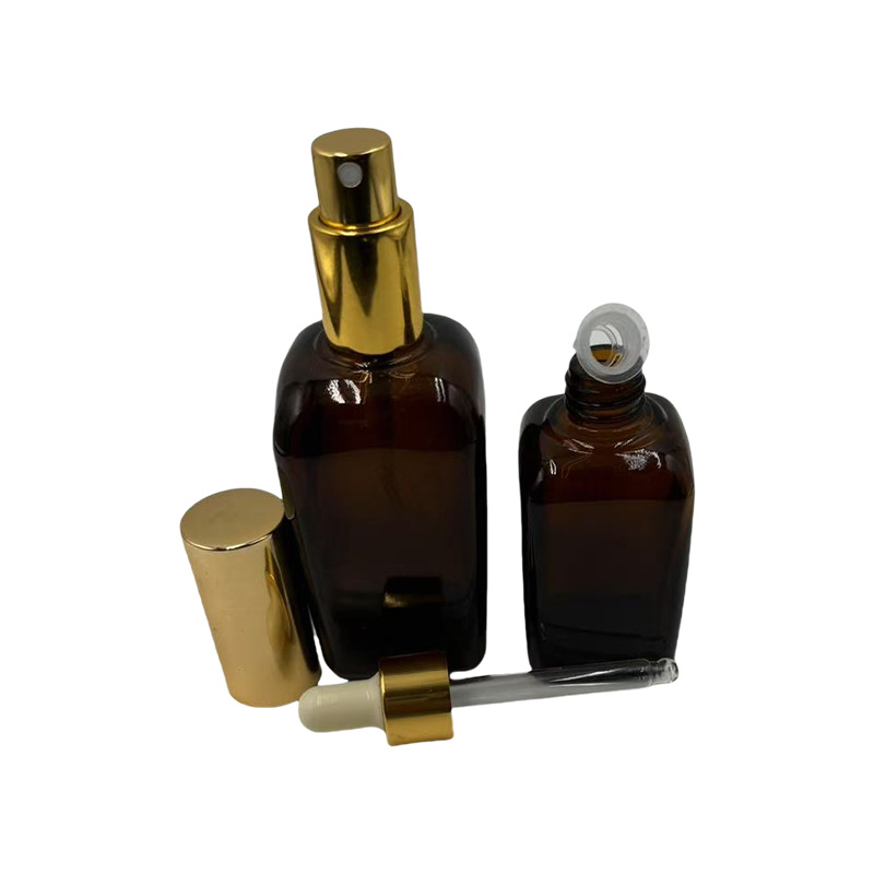 批发茶色玻璃细雾喷雾瓶100ml/50ml毫升乳液精油香水按压分装瓶