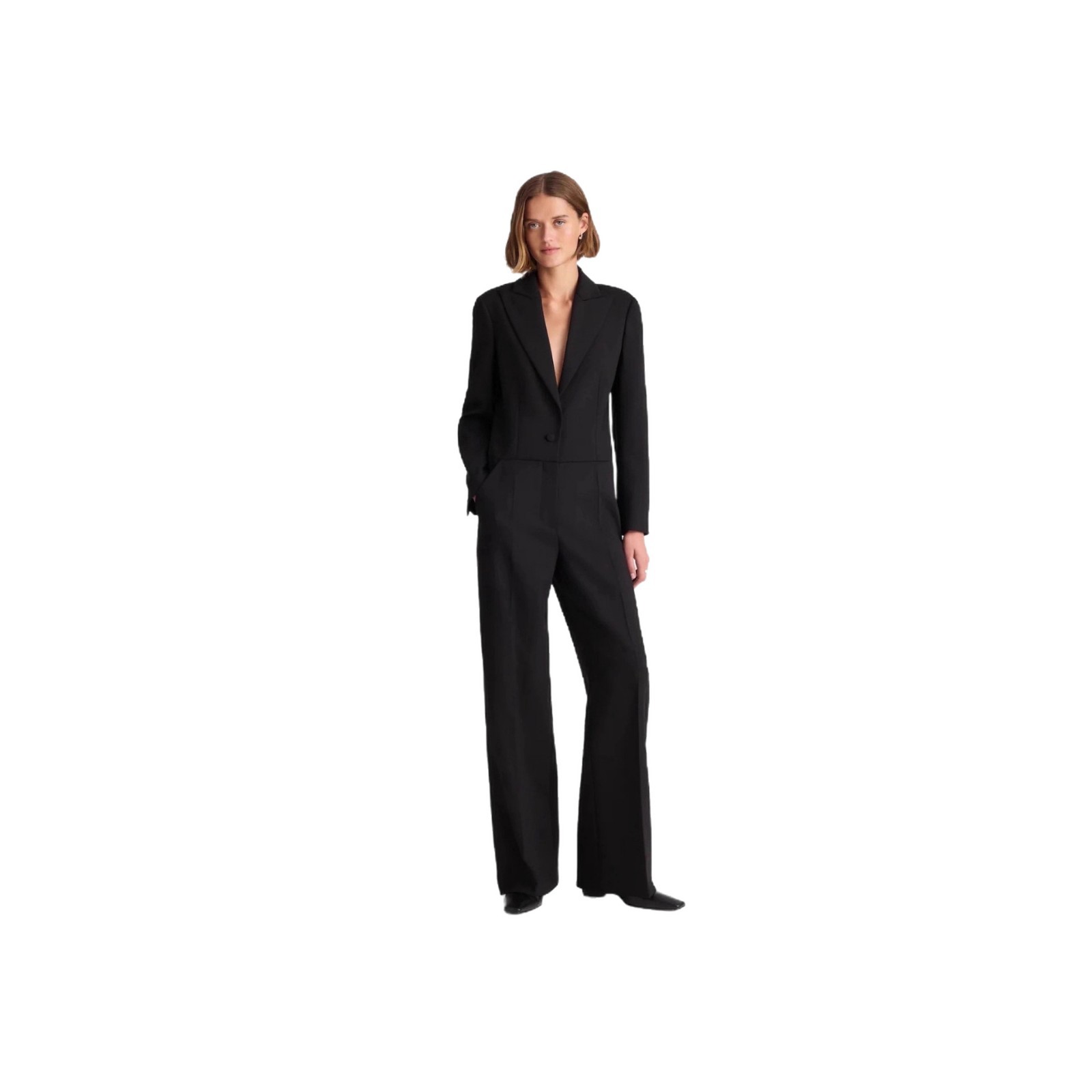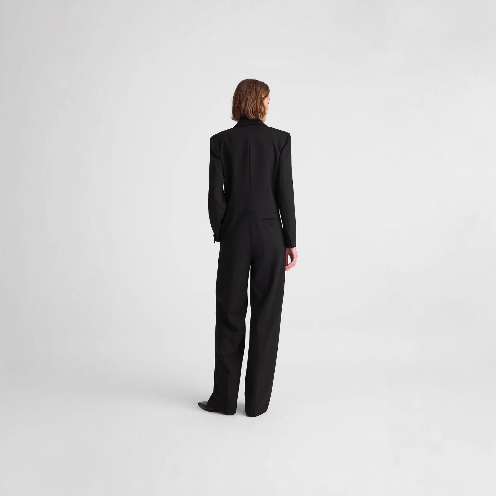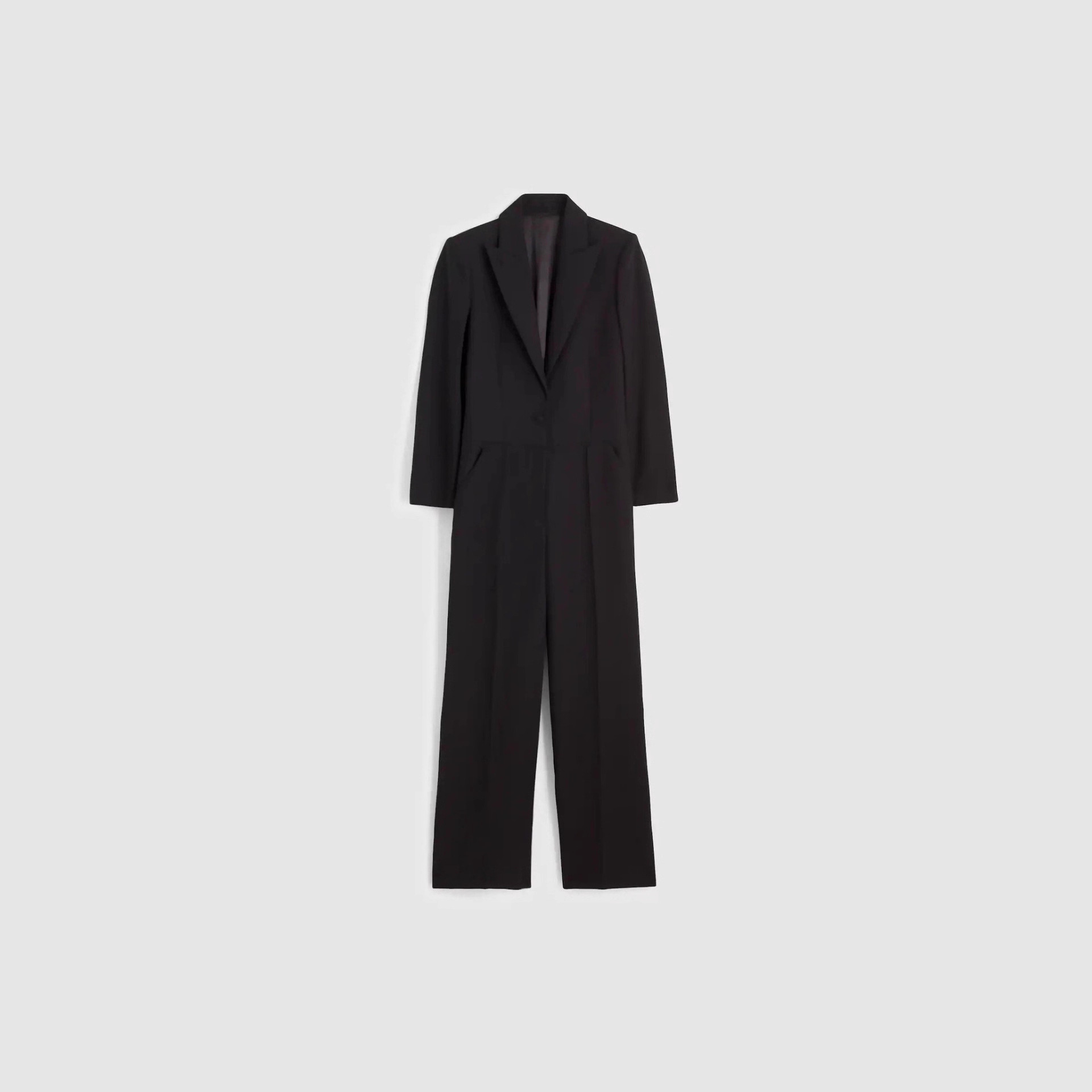 欧美跨境2025秋冬女装大码西装气质优雅垫肩修身黑色纽扣西装连体