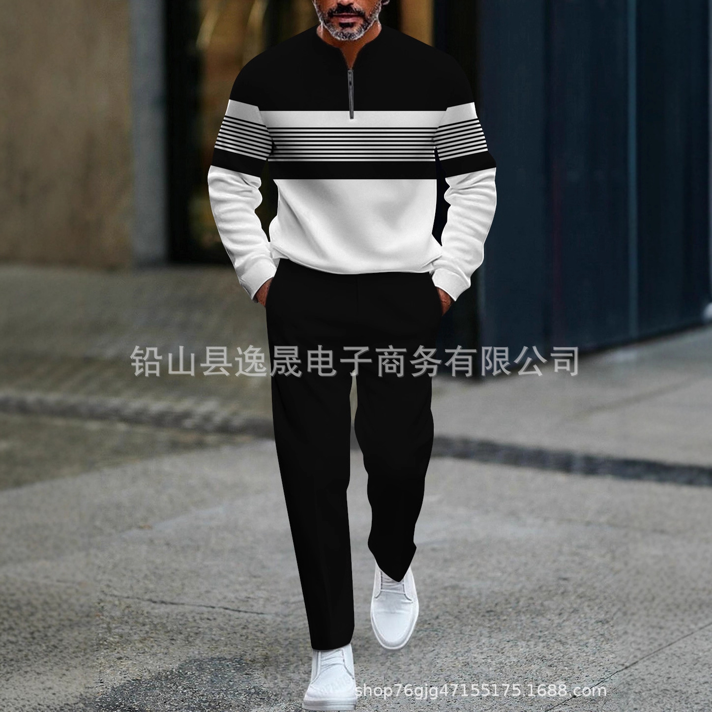 2025欧美亚马逊新款半开门襟拉链套头休闲时尚男士长袖长裤套装