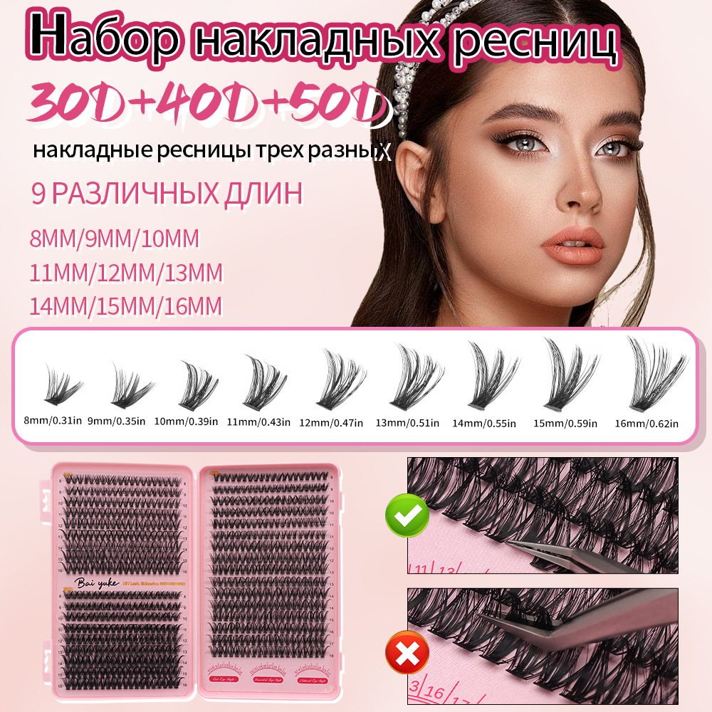 大容量分段朵毛浓密自嫁接懒人单簇DIY假睫毛套装眼尾化妆软毛