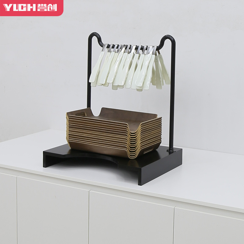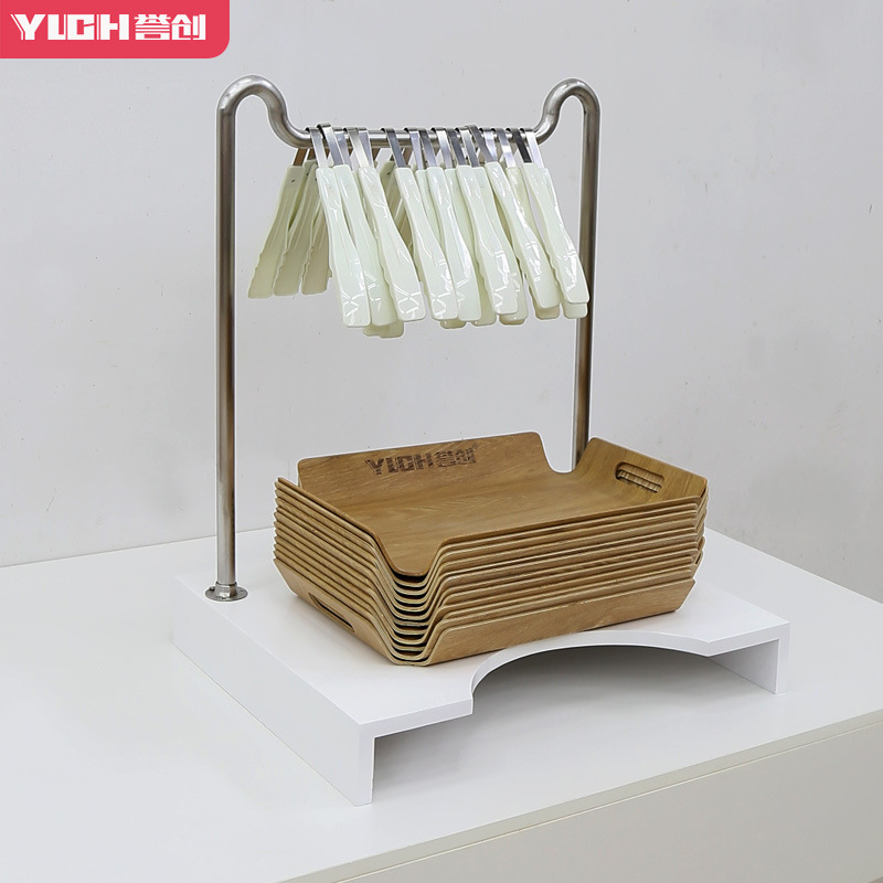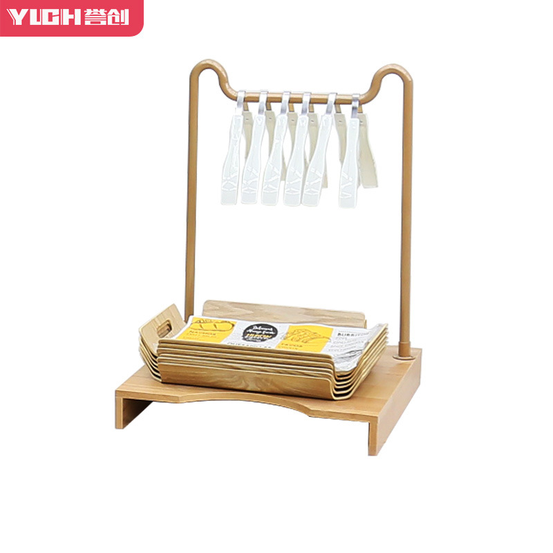 规格型号3642款餐盘架木色底座 不锈钢本色挂杆
