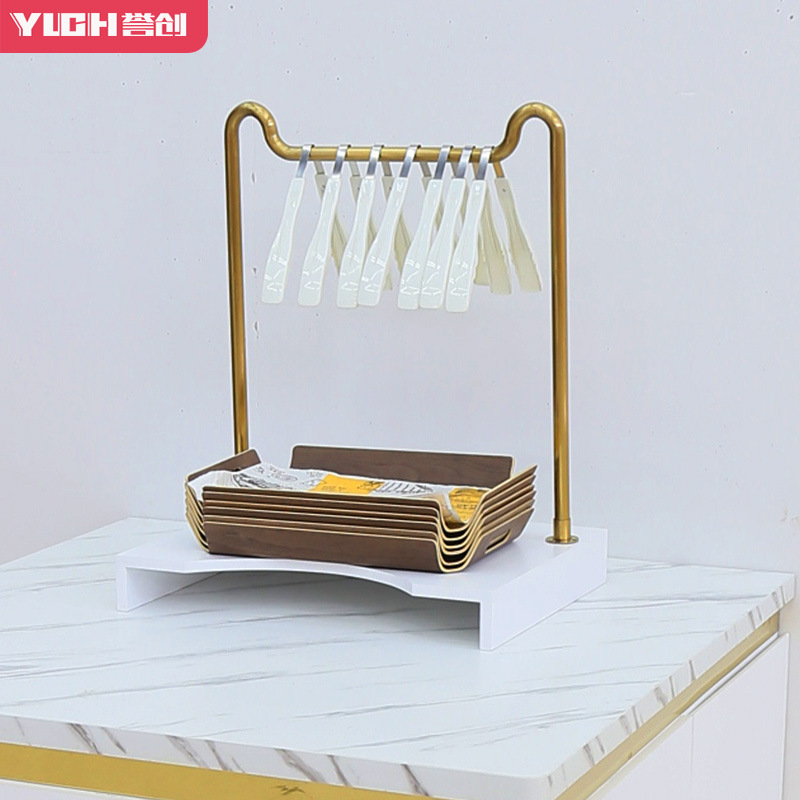 规格型号3642款餐盘架原木色底座 玫瑰金烤漆挂杆