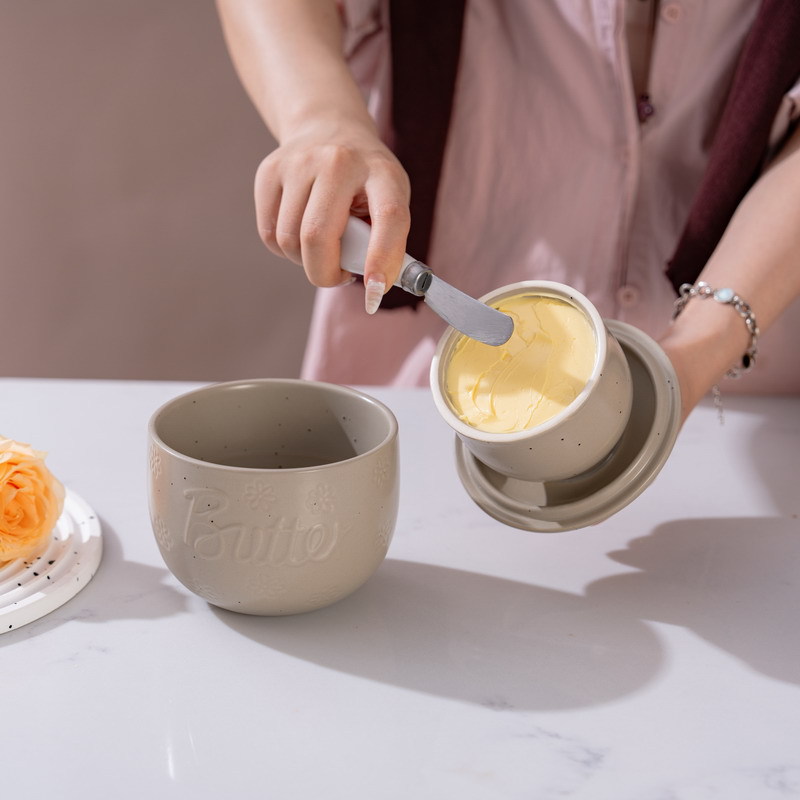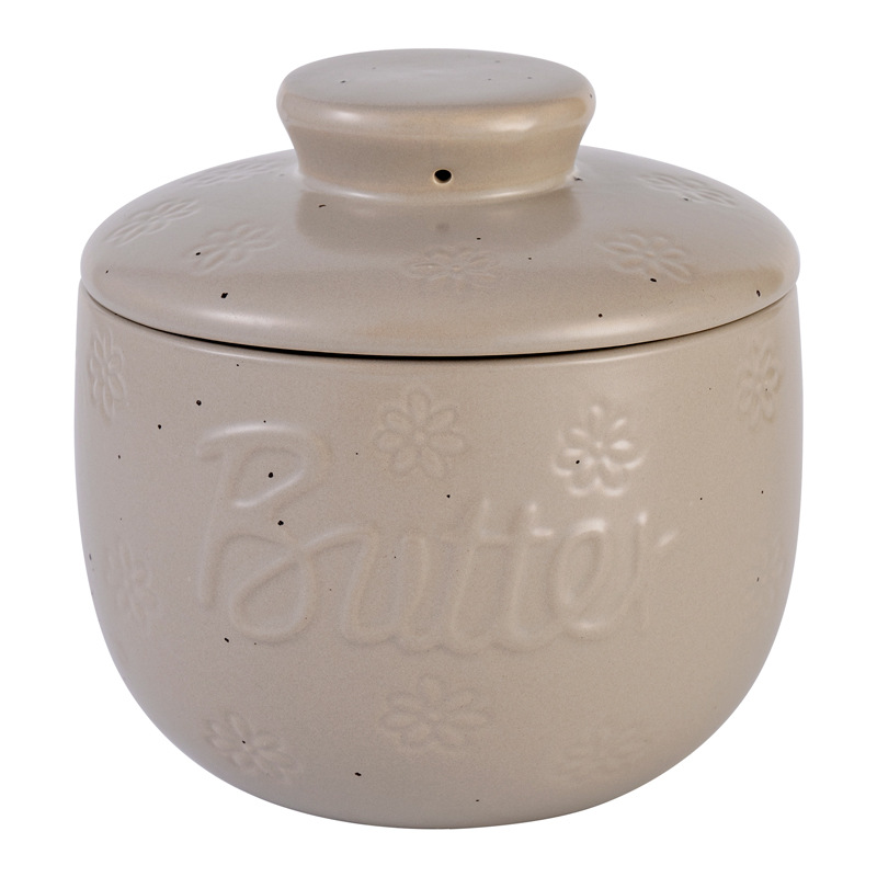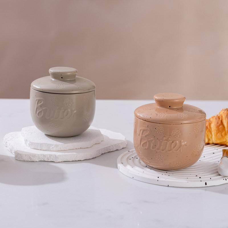 跨境仿古洒墨小花大号陶瓷黄罐 圆形黄油储存罐亚马逊新品牛油盅