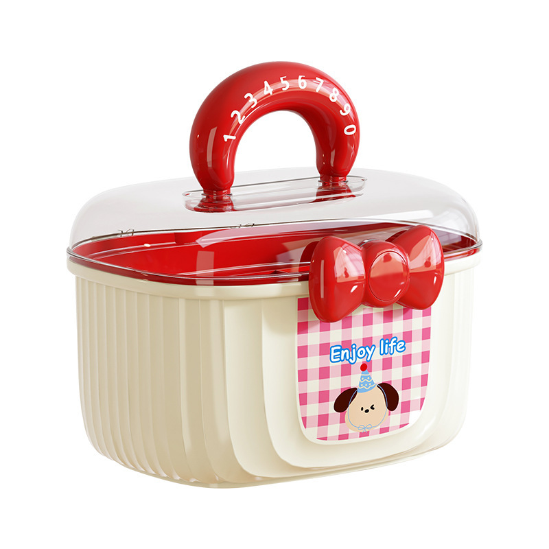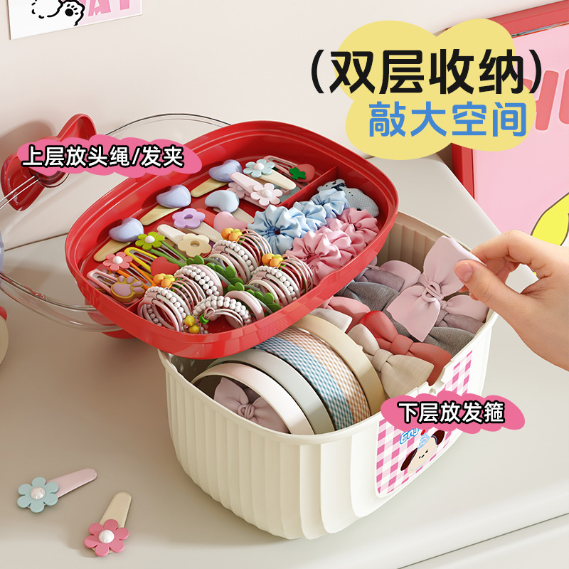 桌面发饰盒儿童卡通双层带分隔大容量发夹首饰多功能手提收纳盒