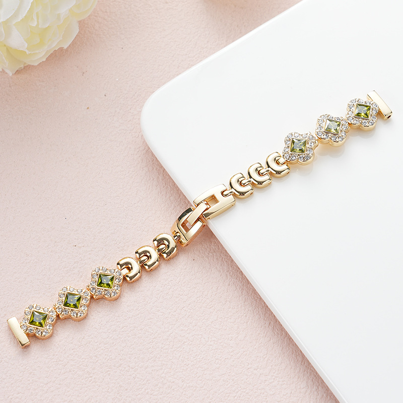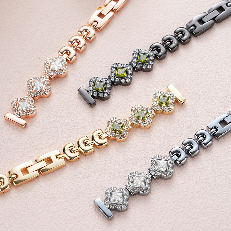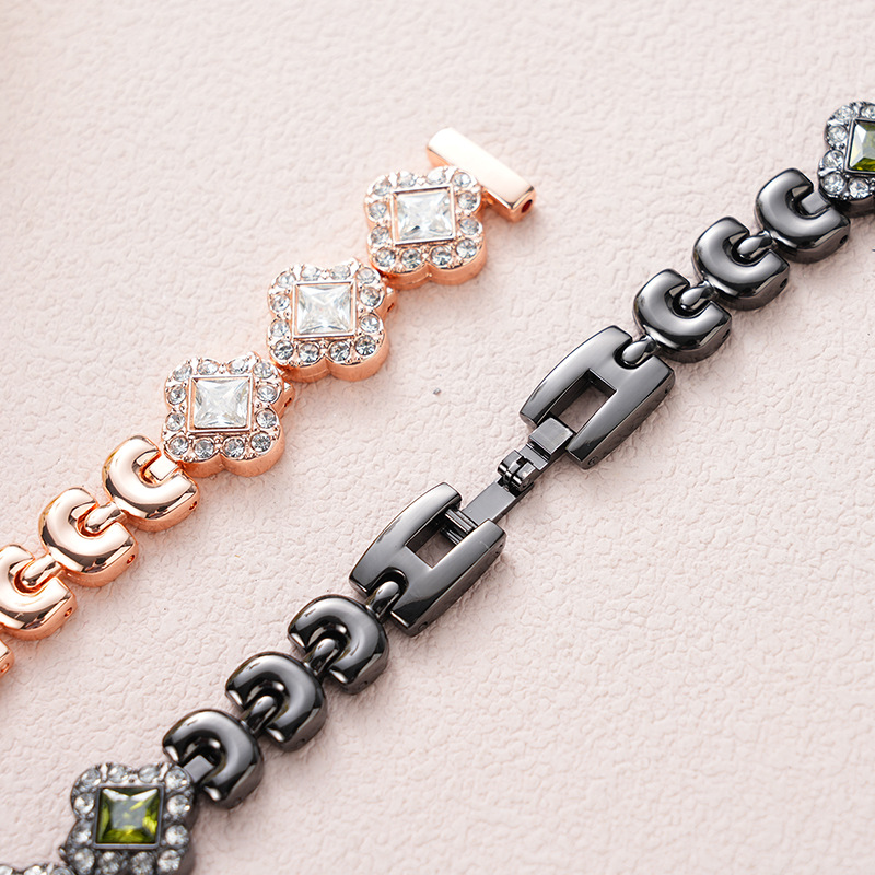 定制适用苹果iwatch s11-3代se和小米手环表带四叶草锆石闪钻金属