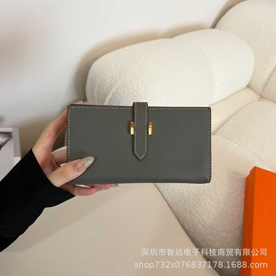 2025新款钱包男女式长款钱包EP皮手掌纹对折钱夹多卡位抽带钱夹