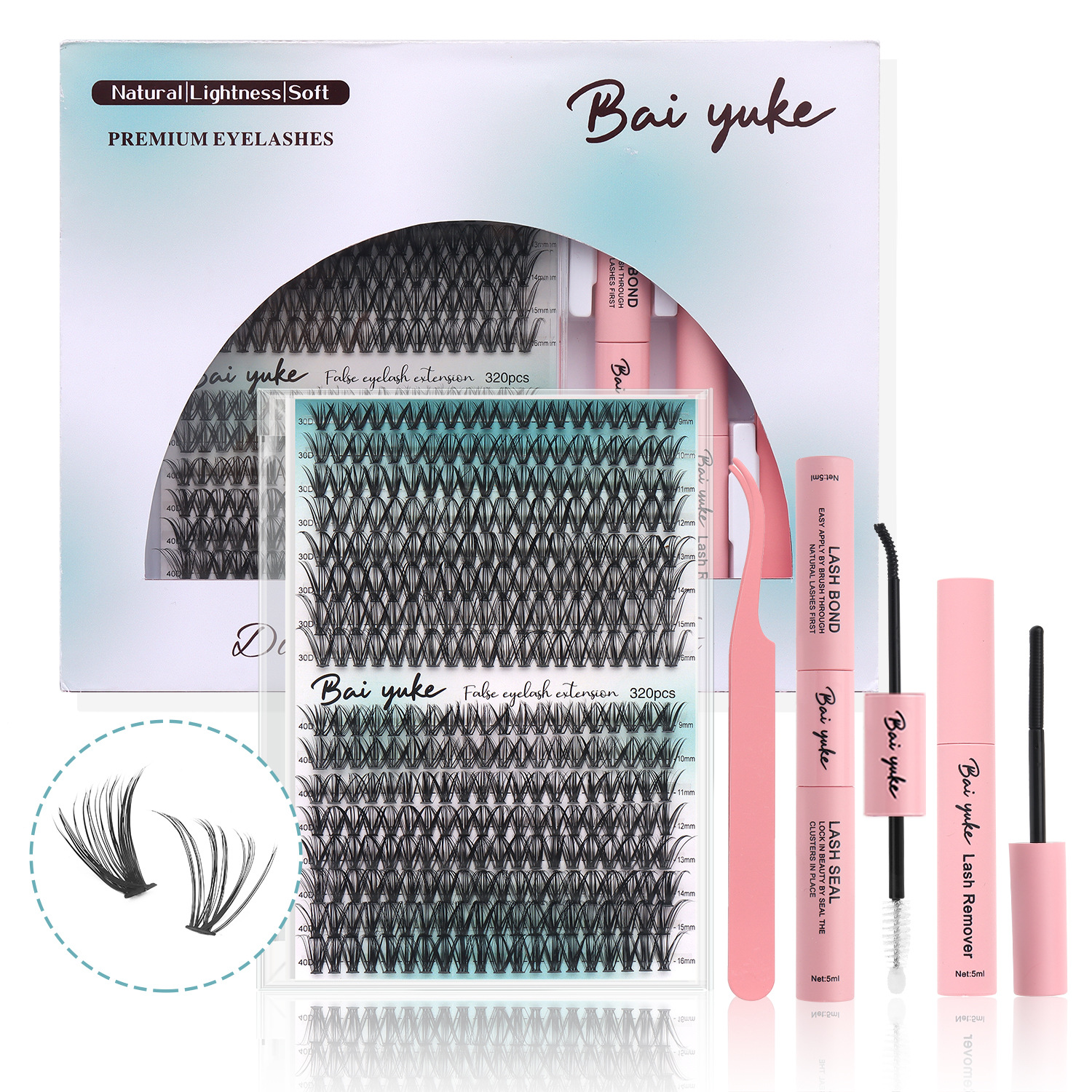 | 规格 | 30D+40D混装单盒 | 规格 | 单盒睫毛+双头胶水+卸除液+镊子 |