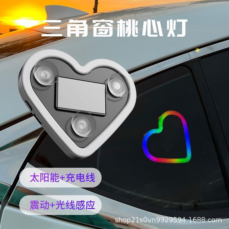 汽车爱心灯太阳能无线装饰灯LED警示灯三角窗后窗车载幻彩氛围灯