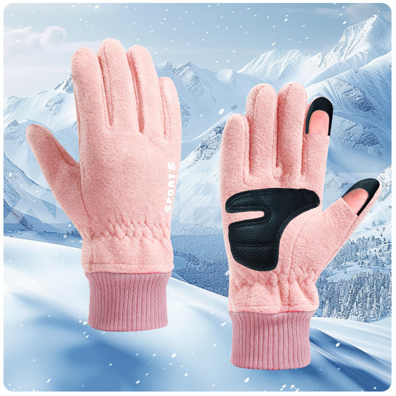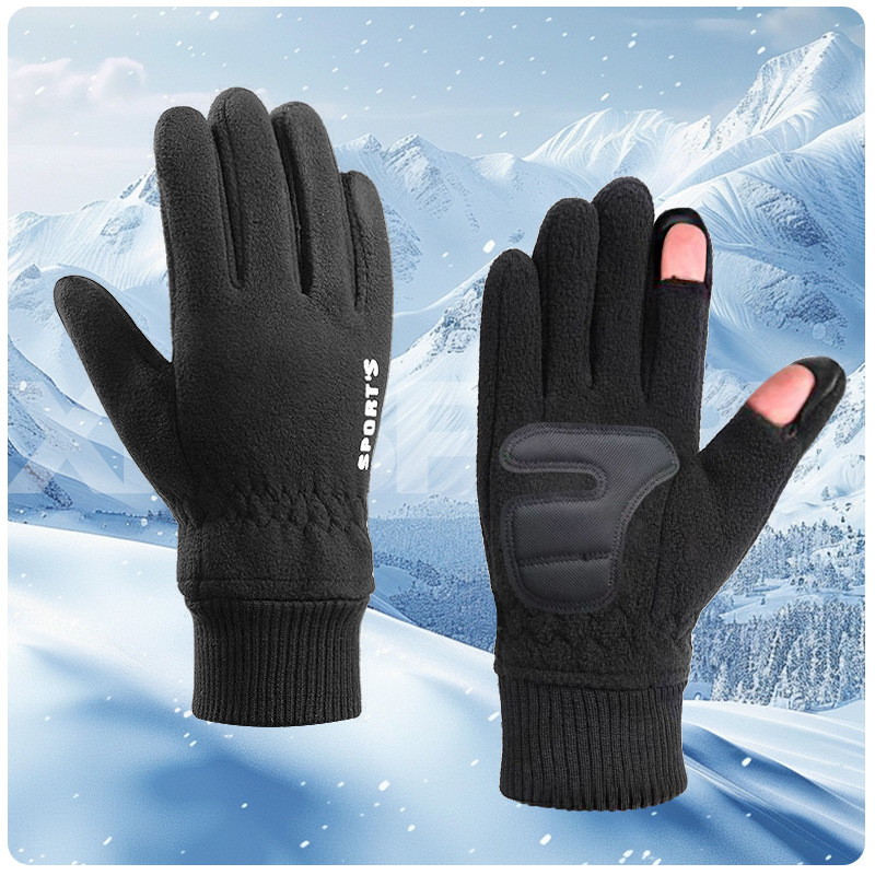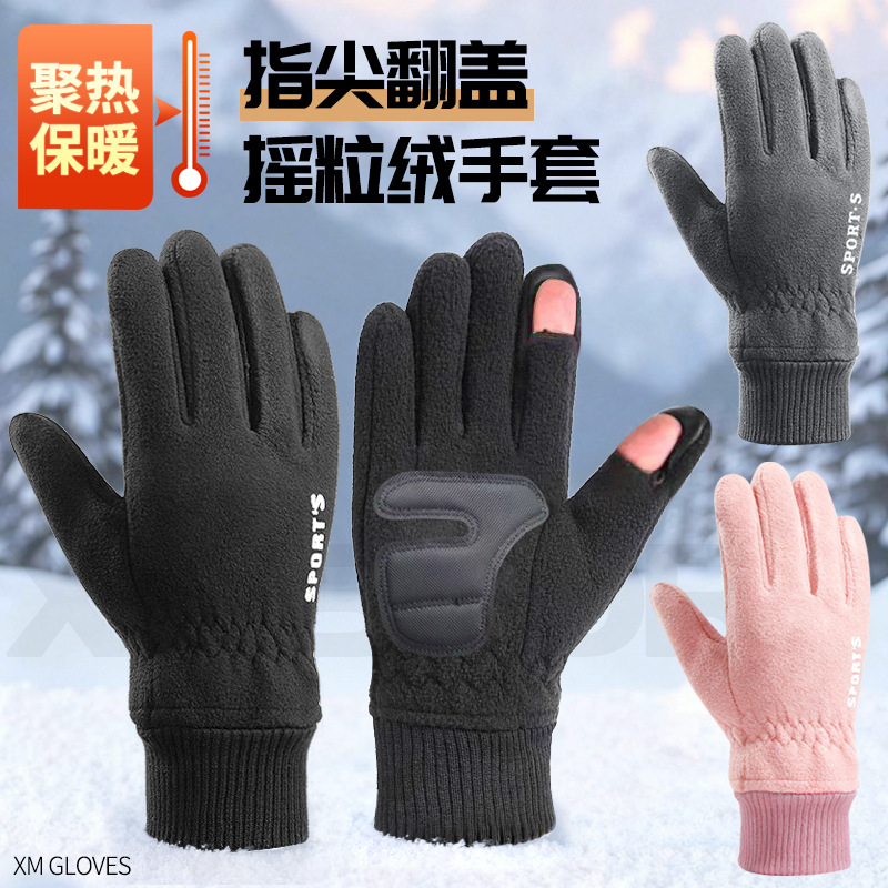 秋冬季摇粒绒户外骑行保暖开车加绒骑手外卖运动钓鱼快递员手套