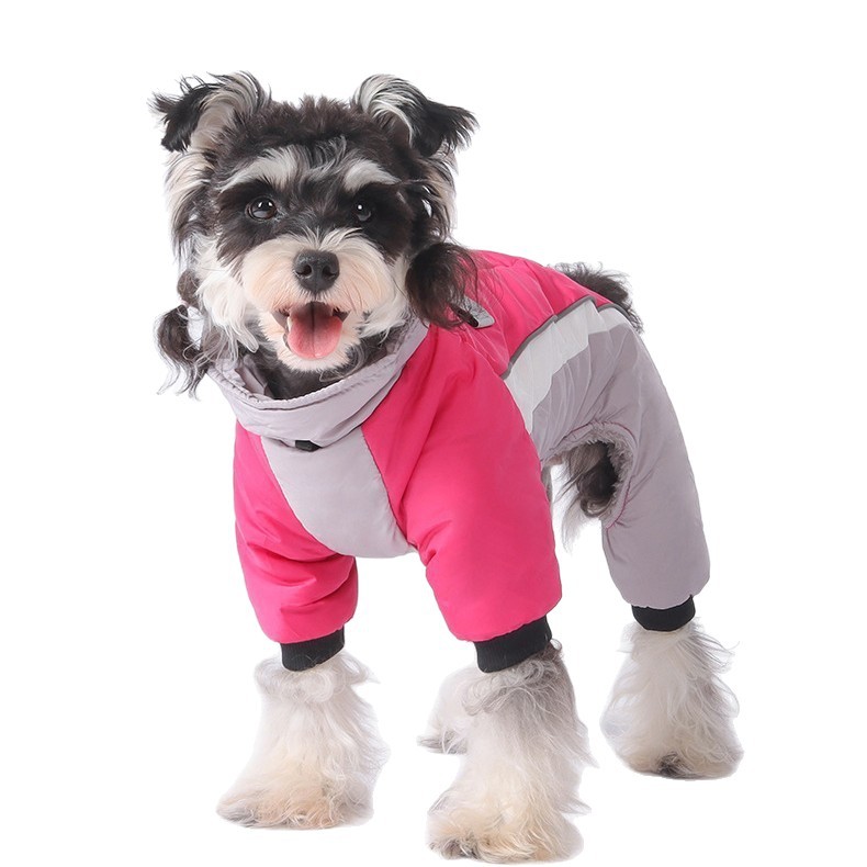 跨境宠物小衣服泰迪比熊博美四脚棉衣保暖秋冬装牵引绳胸狗狗衣服