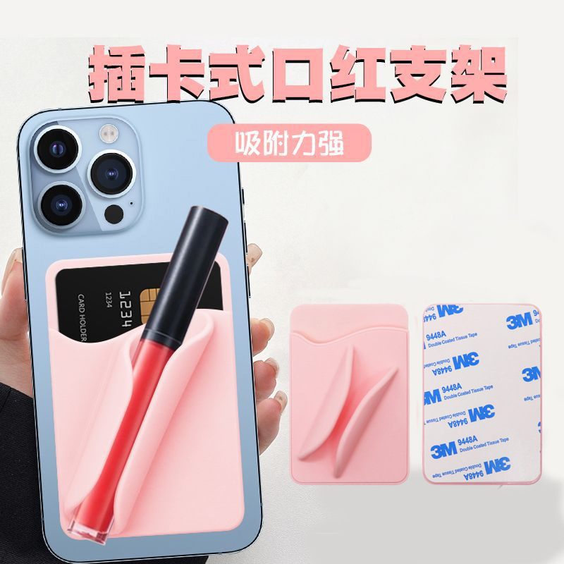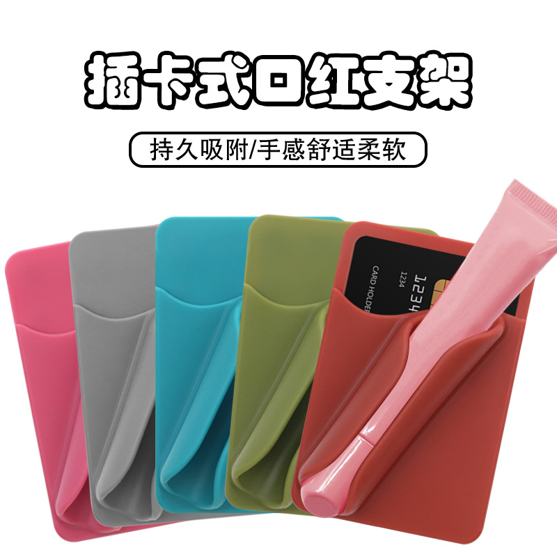新款硅胶方形口红支架便携式唇膏支架带背胶卡包通用款