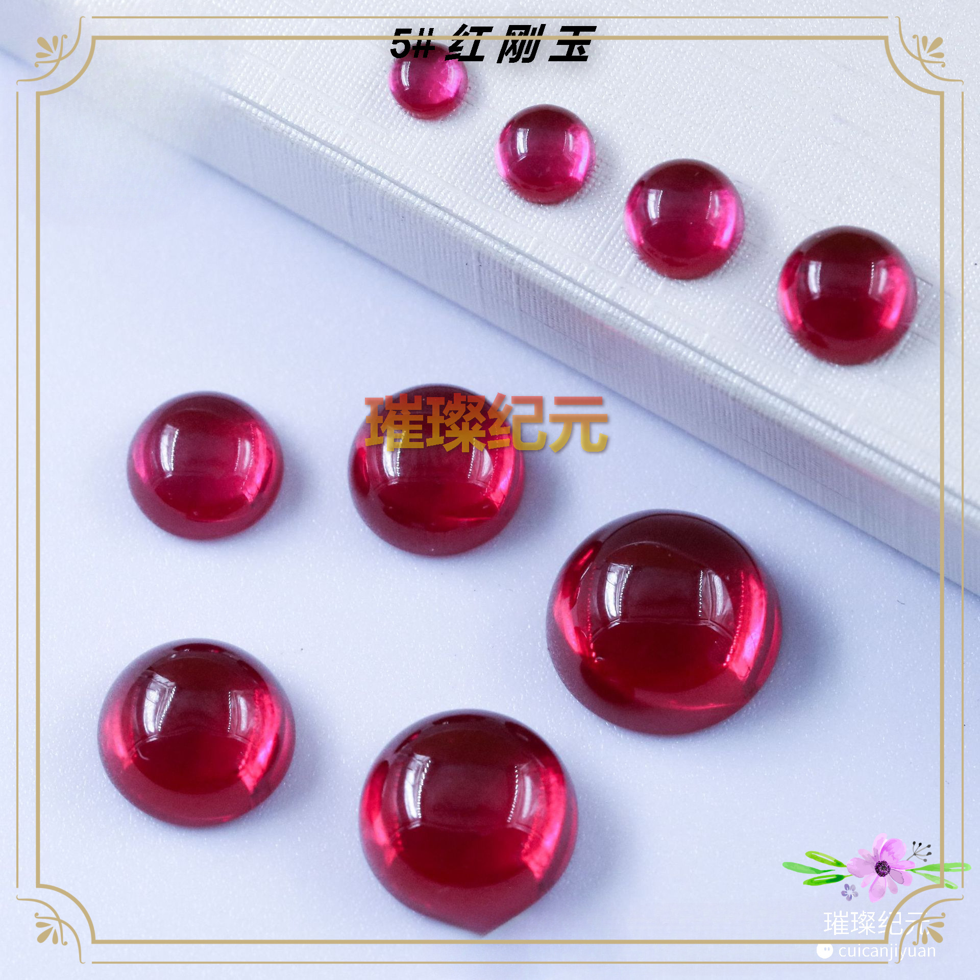 人造5#红刚玉裸石圆形平底素面合成红宝石素面戒面裸石现货批发