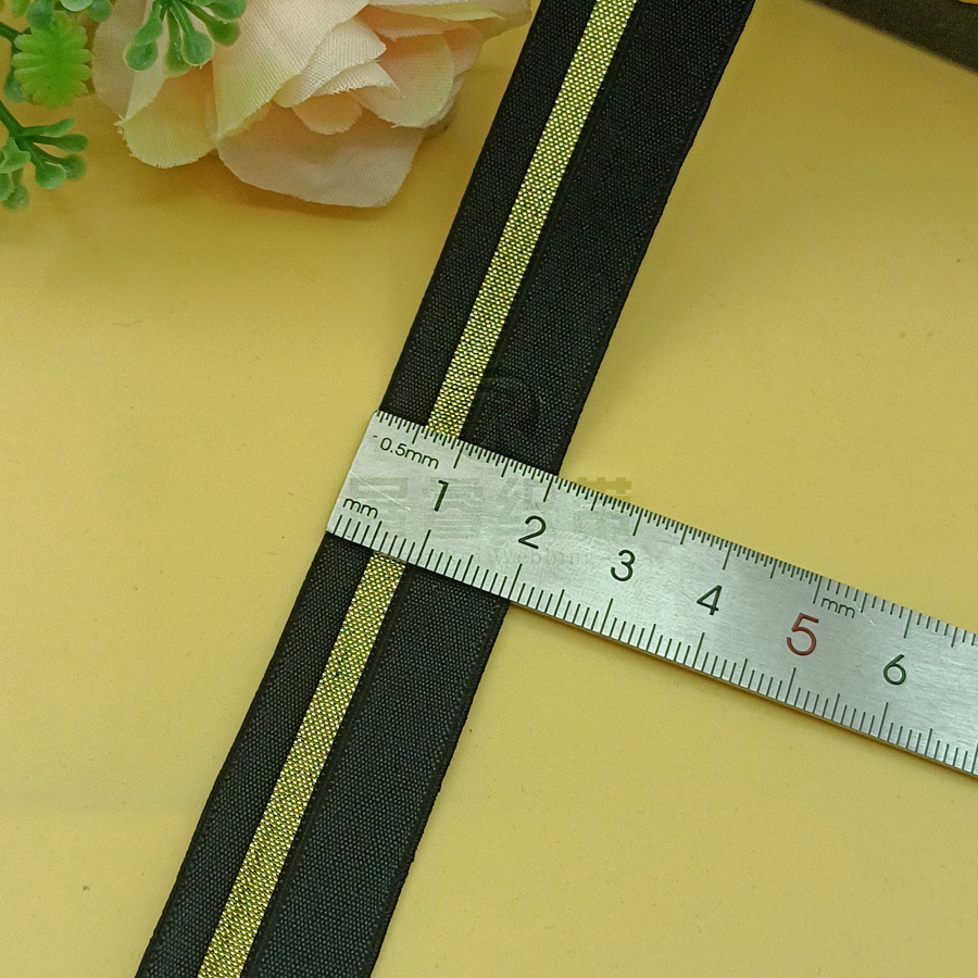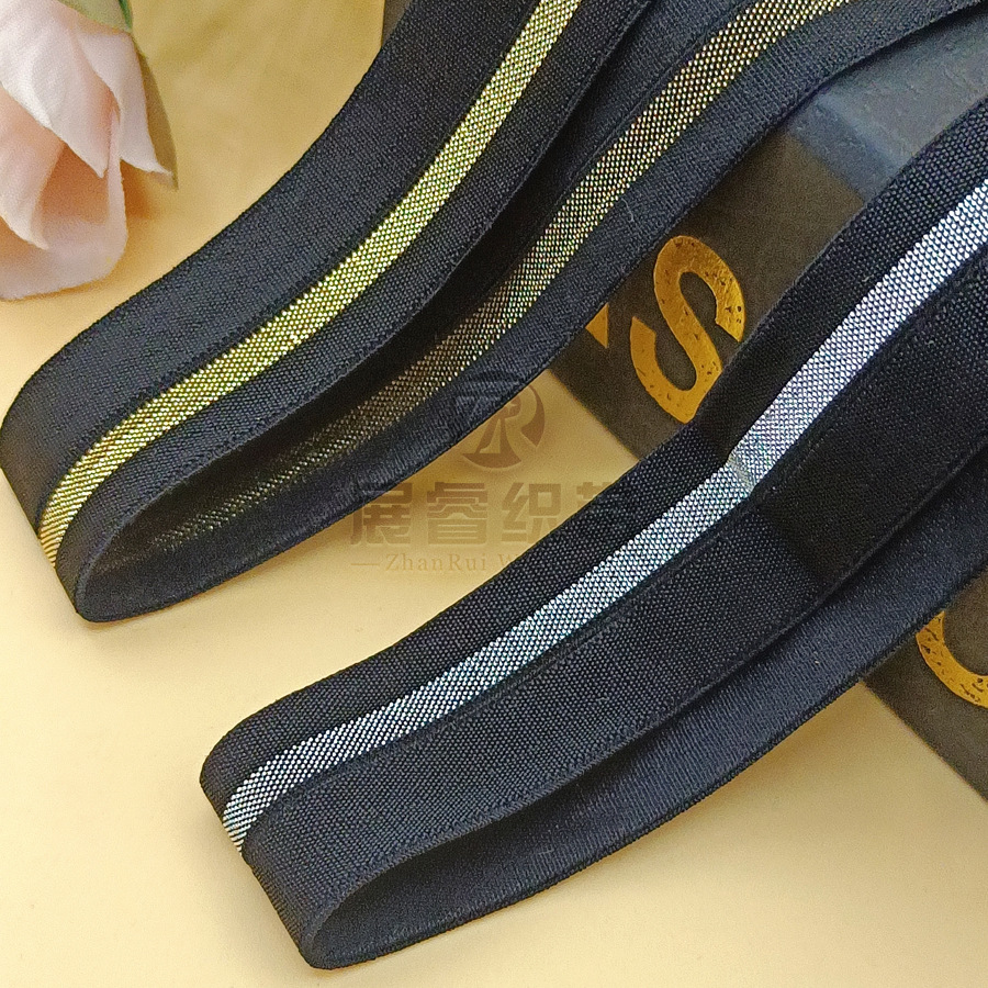 【现货】2.0cm黑色金银条高弹力对折包边 羽绒服裤头童装袖口织带