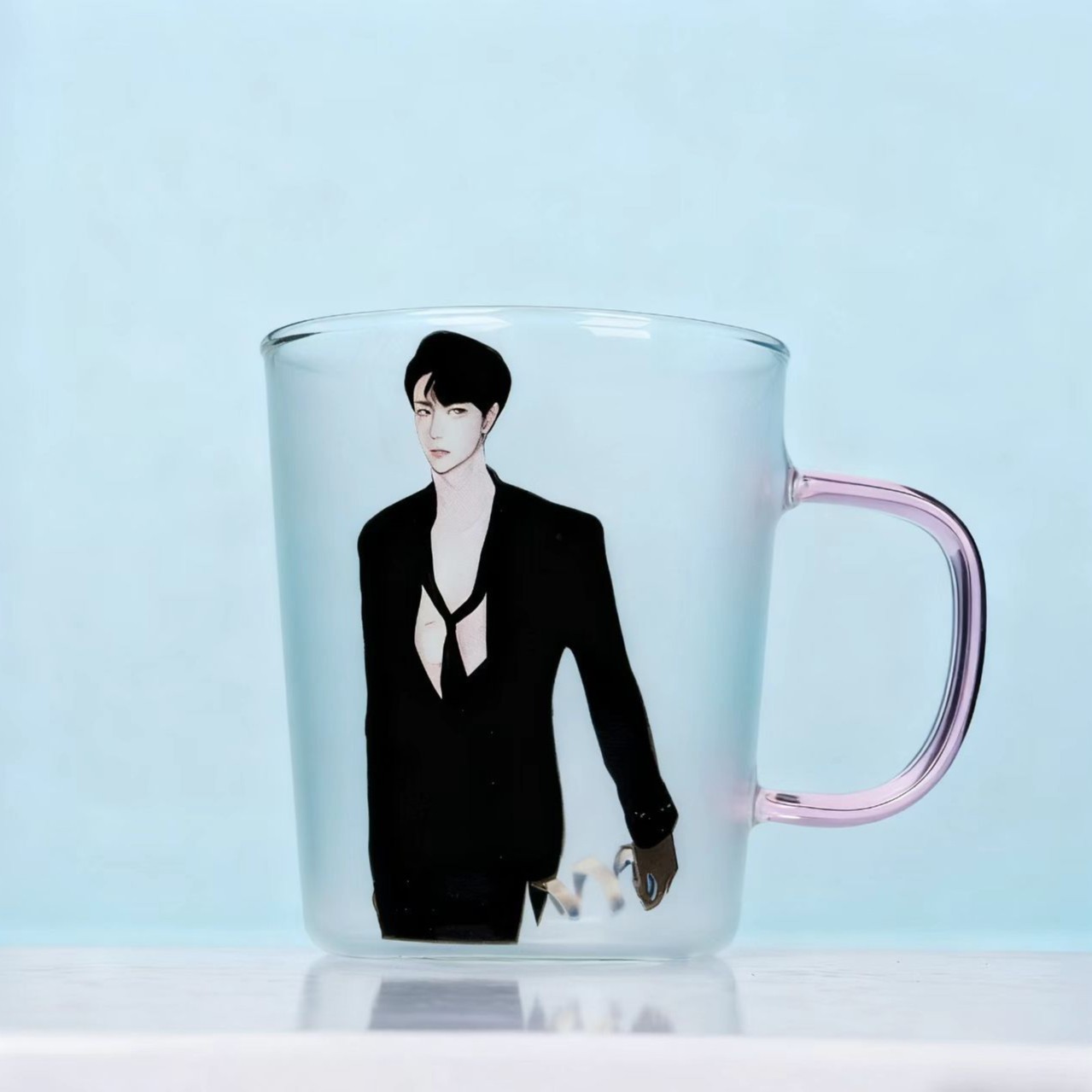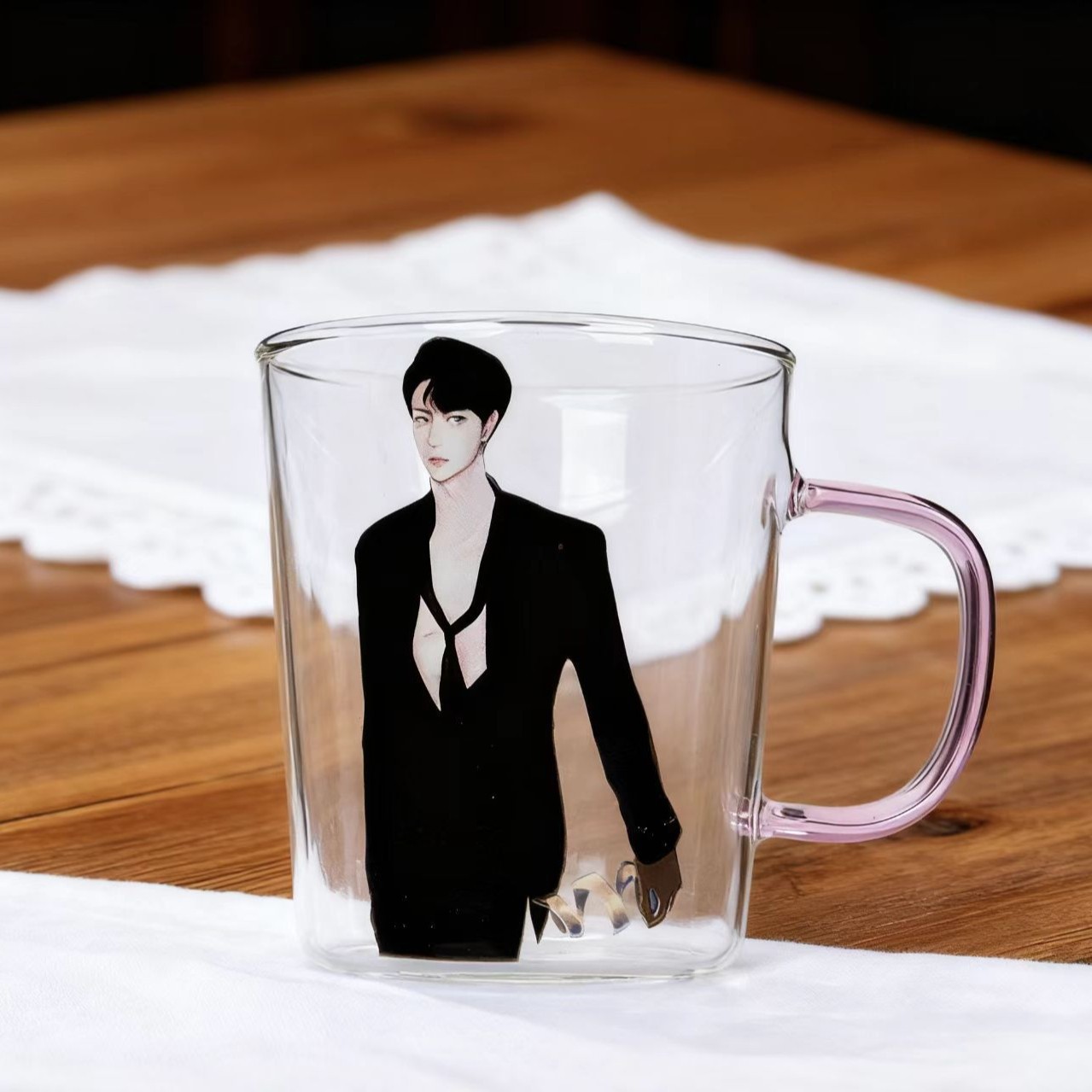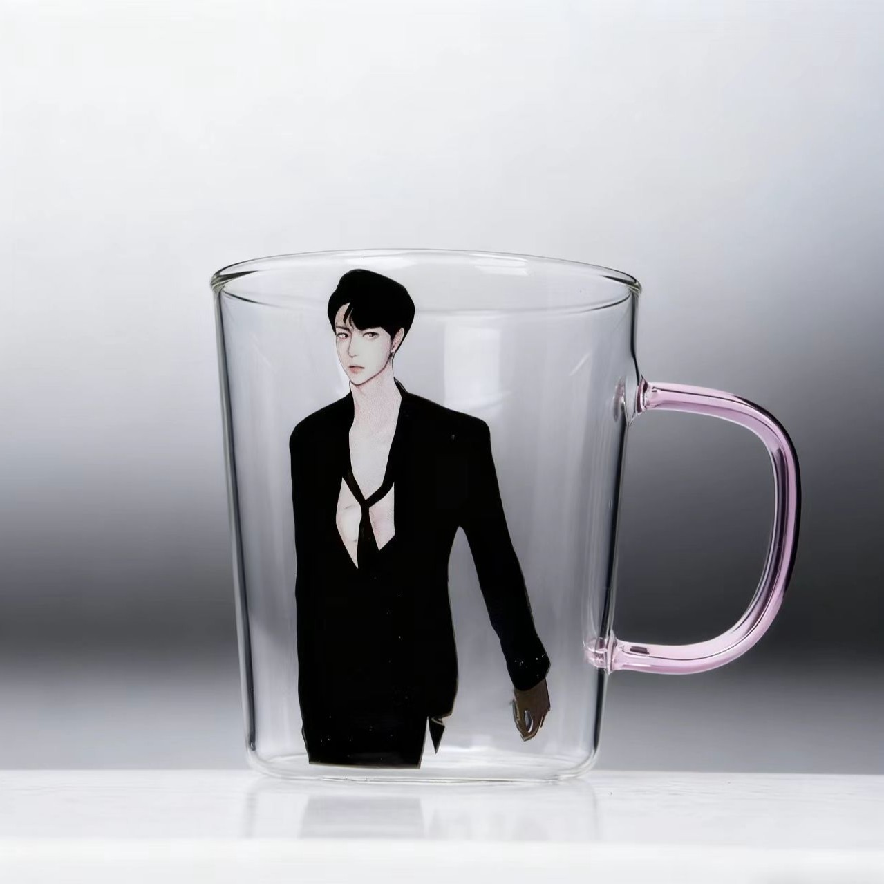 「男友贴贴!禁欲系黑西装二次元透玻杯|喝水都像在对视」