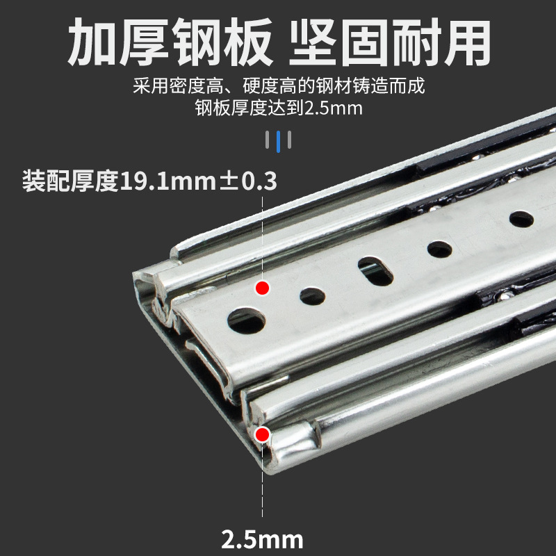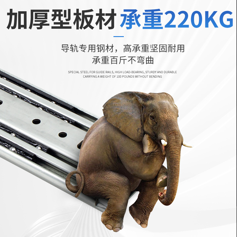 三折滑轨加重型抽屉滑轨76宽机械载重滑轨3.0厚机柜工业导轨定制