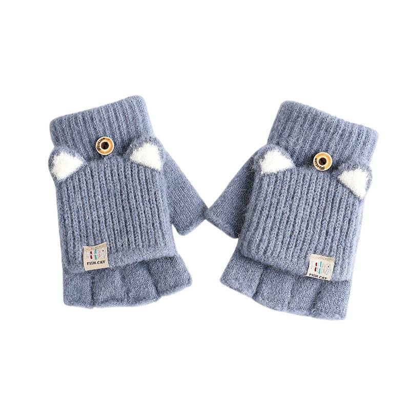 手套女冬季可爱毛线韩版学生保暖防寒写字半指翻盖手套