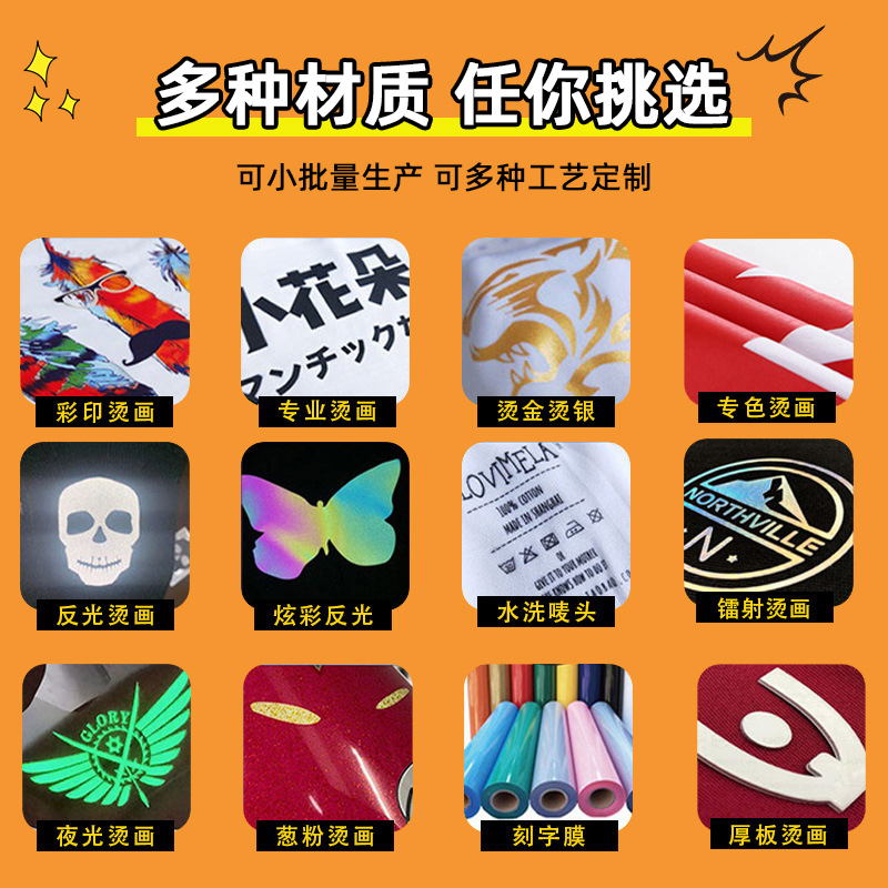 热转印烫画源头厂家3D卡通图服装印花 LOGO烫画热转印PET定 制