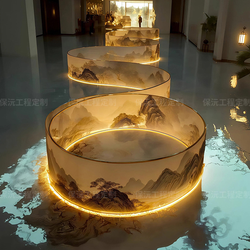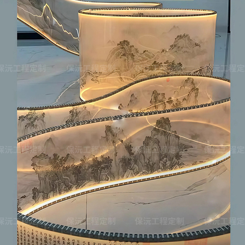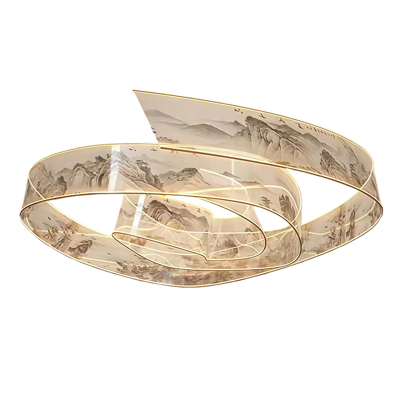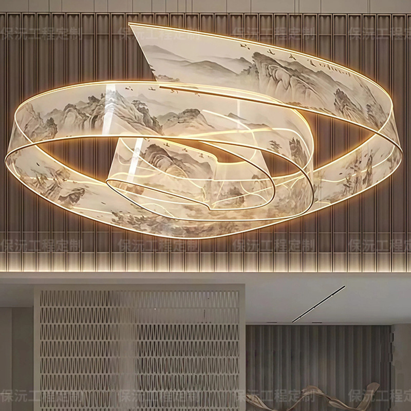 新中式餐厅美学丝绢飘带吊灯酒店餐饮前台山水画印字创艺吊灯定制