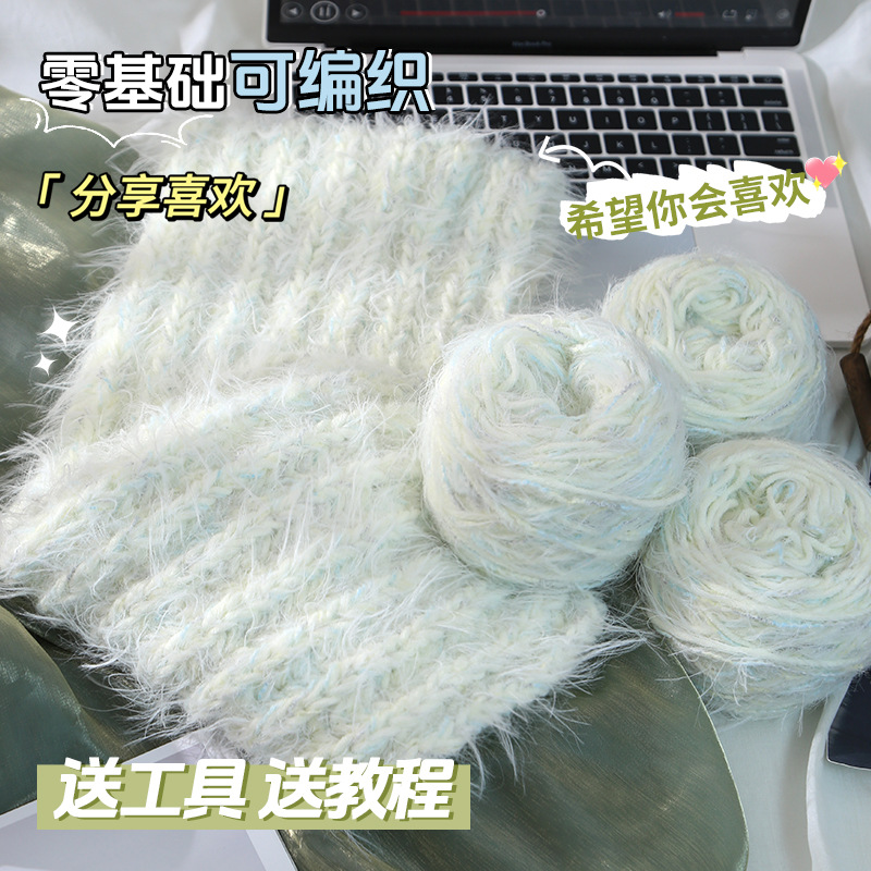 50g温暖长毛混线手工编织diy围巾材料毛线零基础可编织围巾毛线