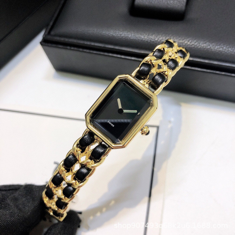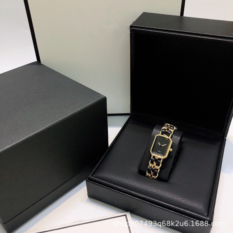 香家小香风中古方糖女表黑金编织带女款复古手表跨境外贸批发手表