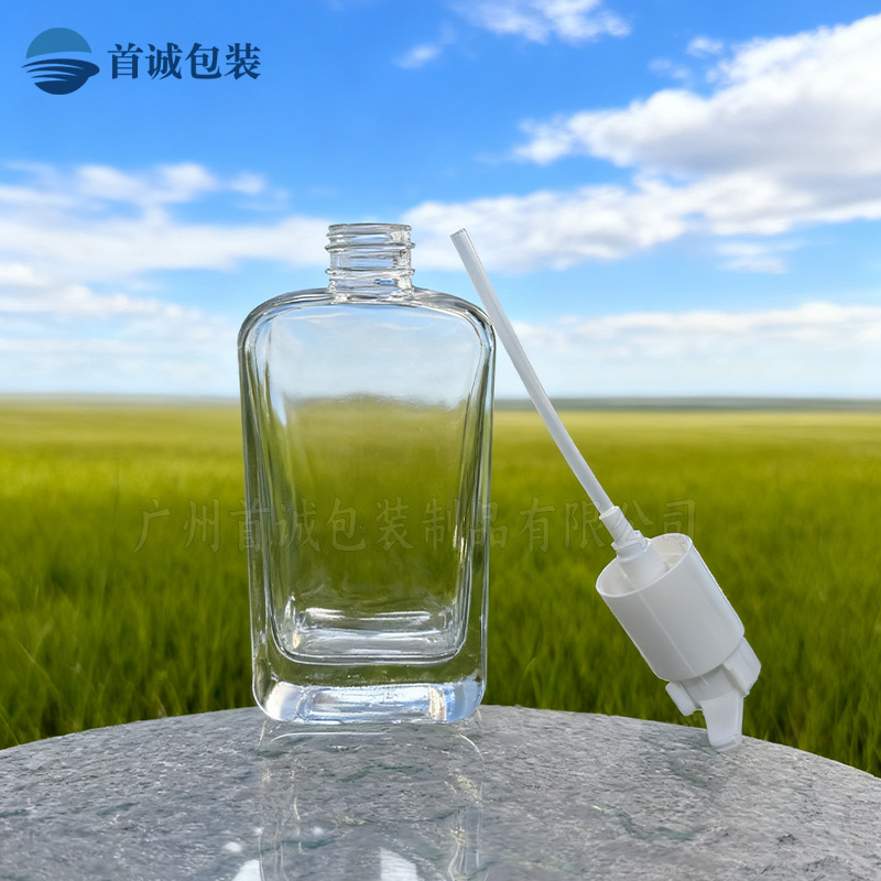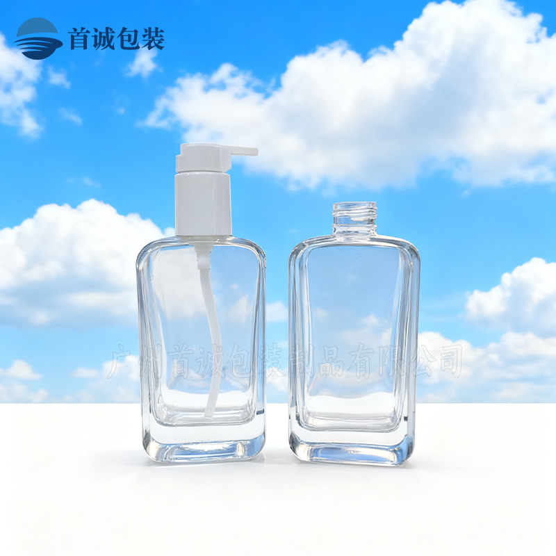 爆款100ml ~150ml扁方瓶精华液乳液大容量按压泵厚底发油瓶批发