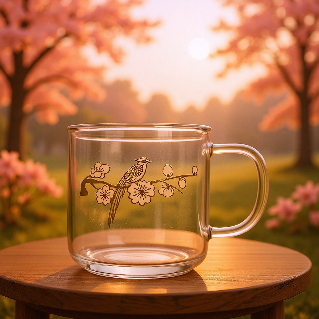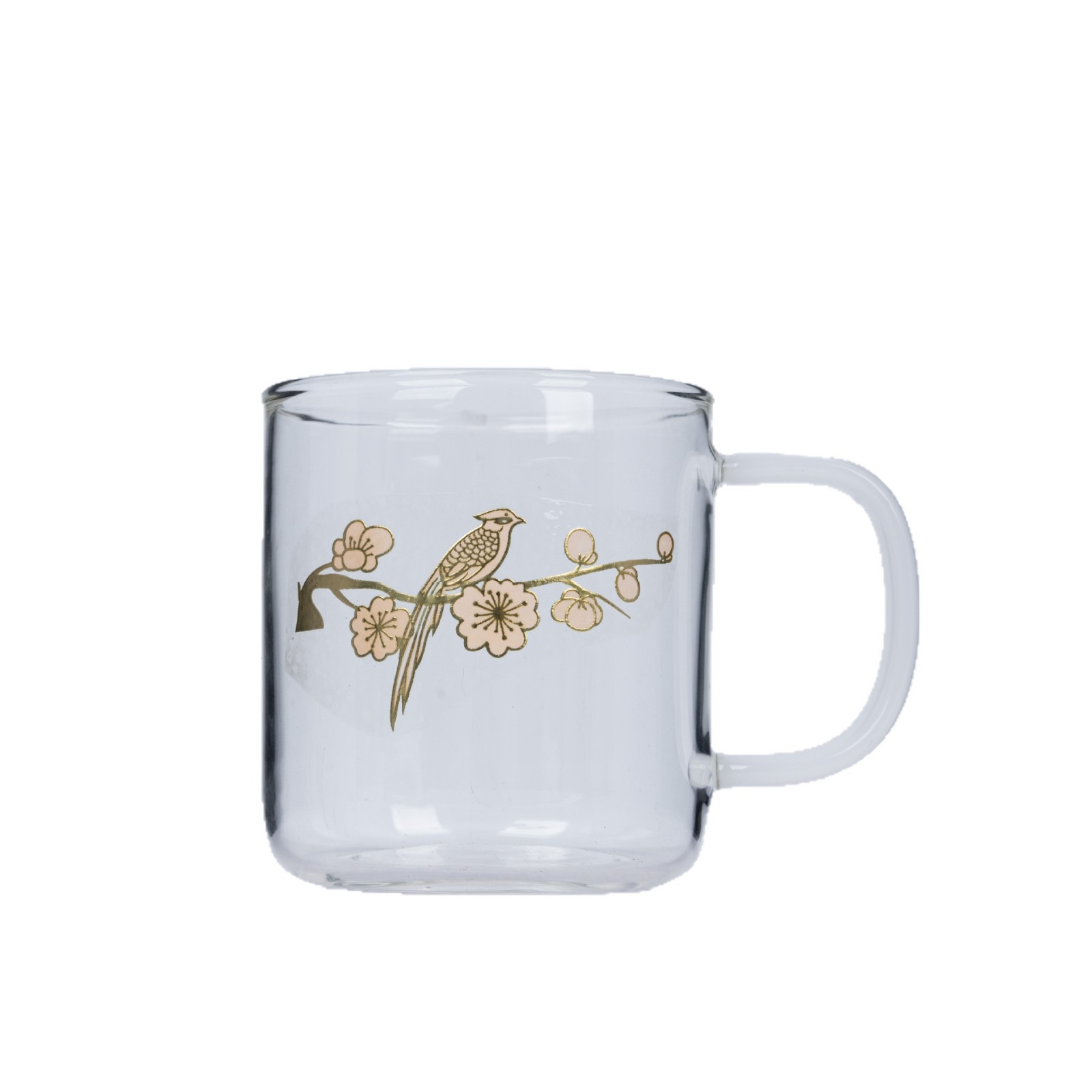 中式花鸟描金耐热玻璃杯 高硼硅透明水杯 文艺茶咖杯