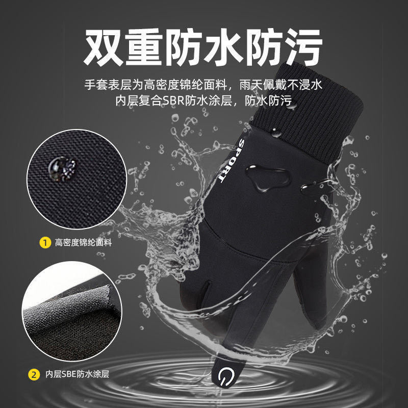辛集冬季保暖骑行手套健身运动骑车触屏加绒加厚防寒防水滑雪手套