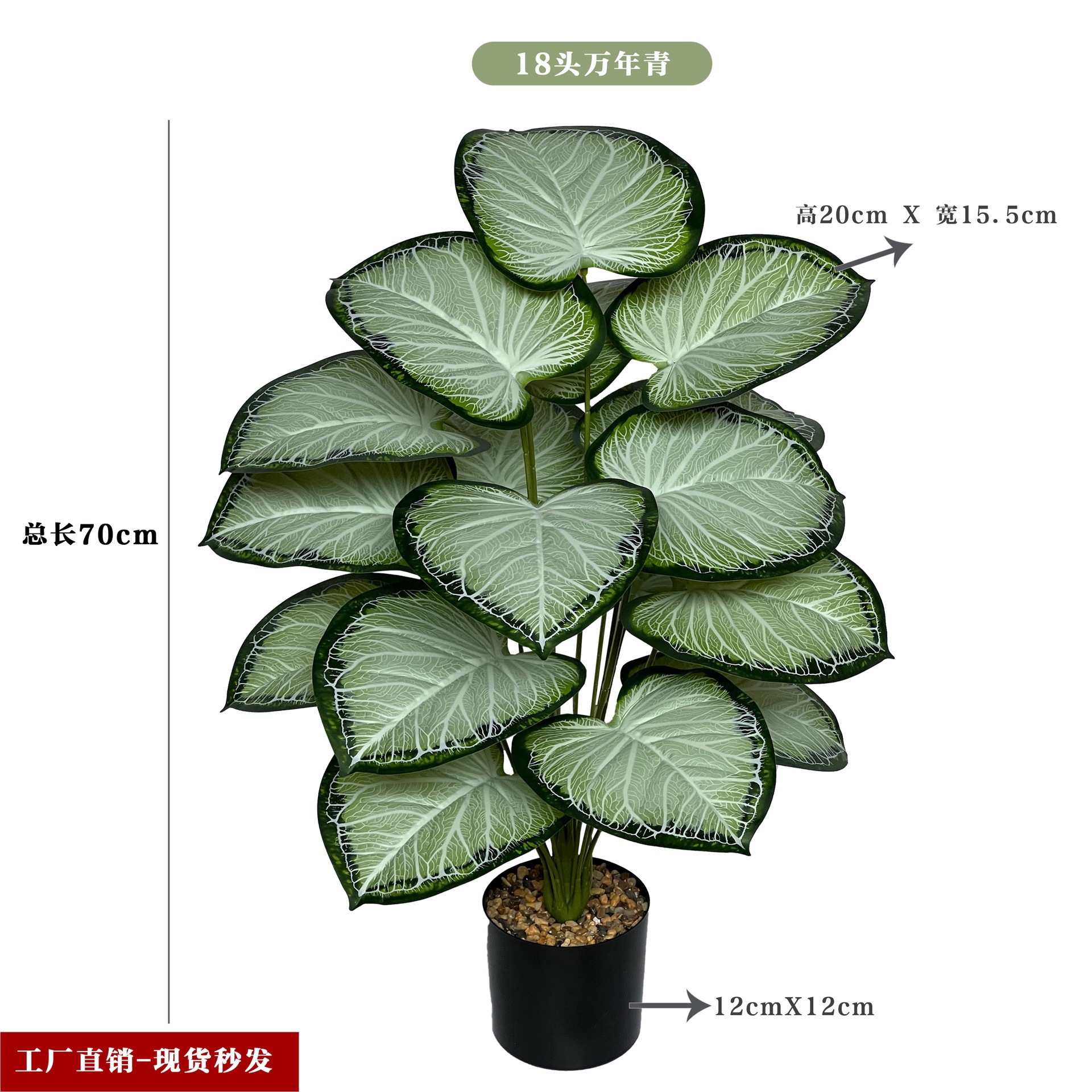 跨境仿真绿植盆栽滴水观音彩芋落地室内外加假树摆设装饰家居盆景